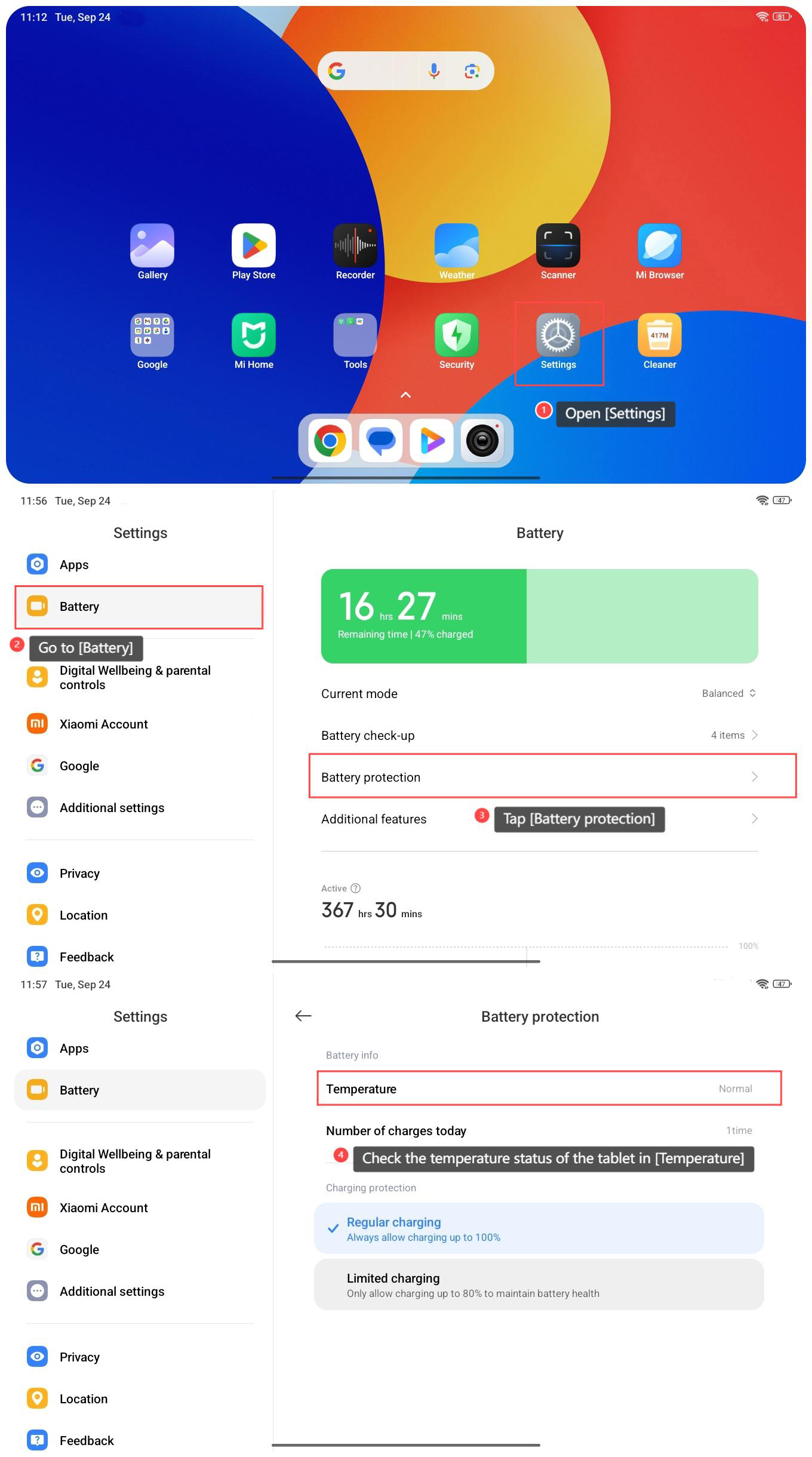 如何檢查 Redmi Pad SE 8.7 的電池溫度?