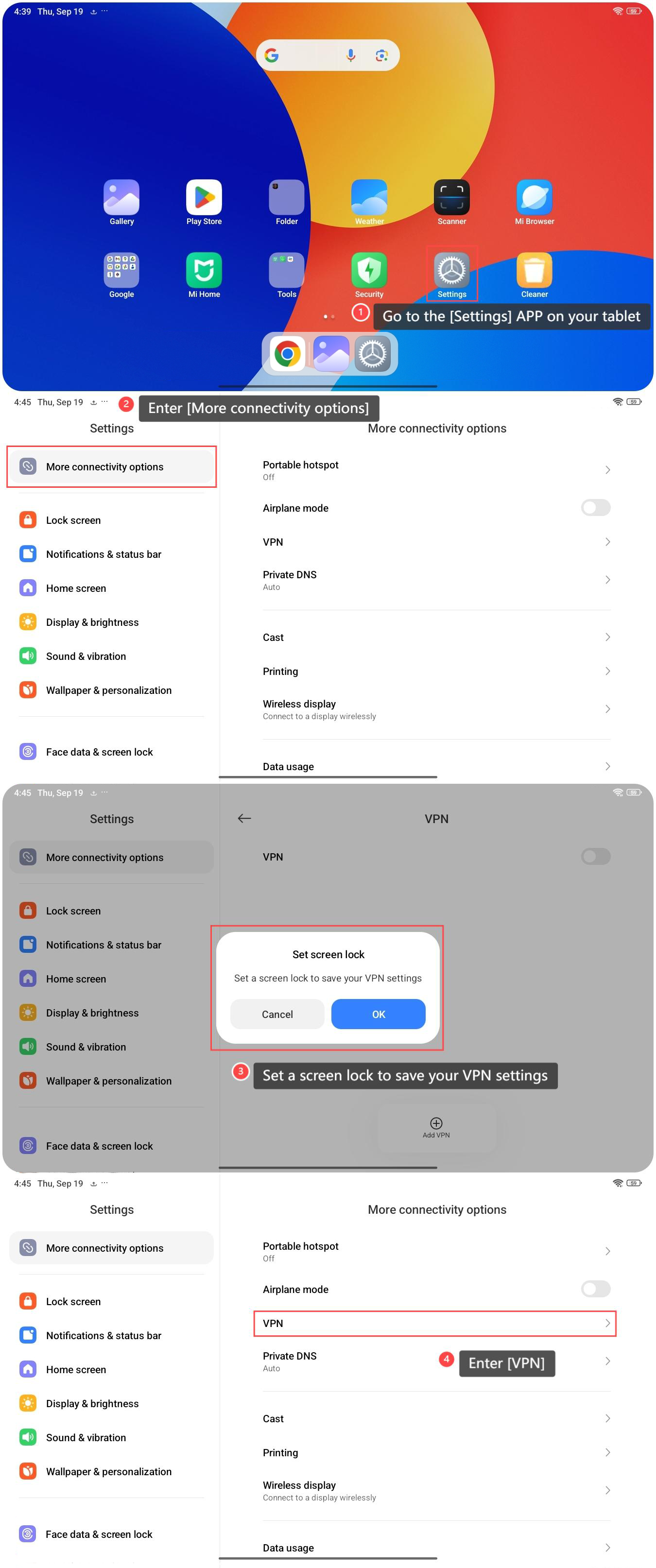 3. 您需要設定螢幕鎖定以儲存您的 VPN 設定;
