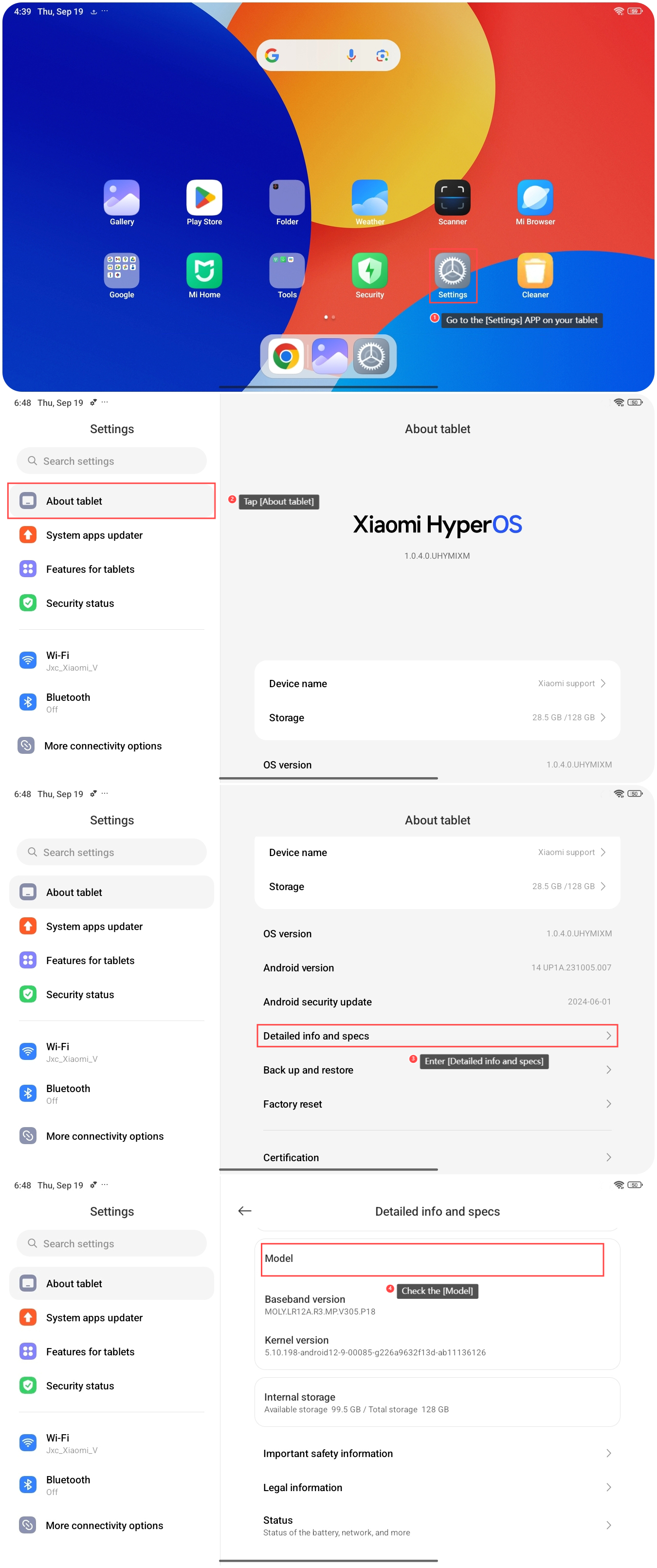 如何檢查 Redmi Pad SE 8.7 的型號?