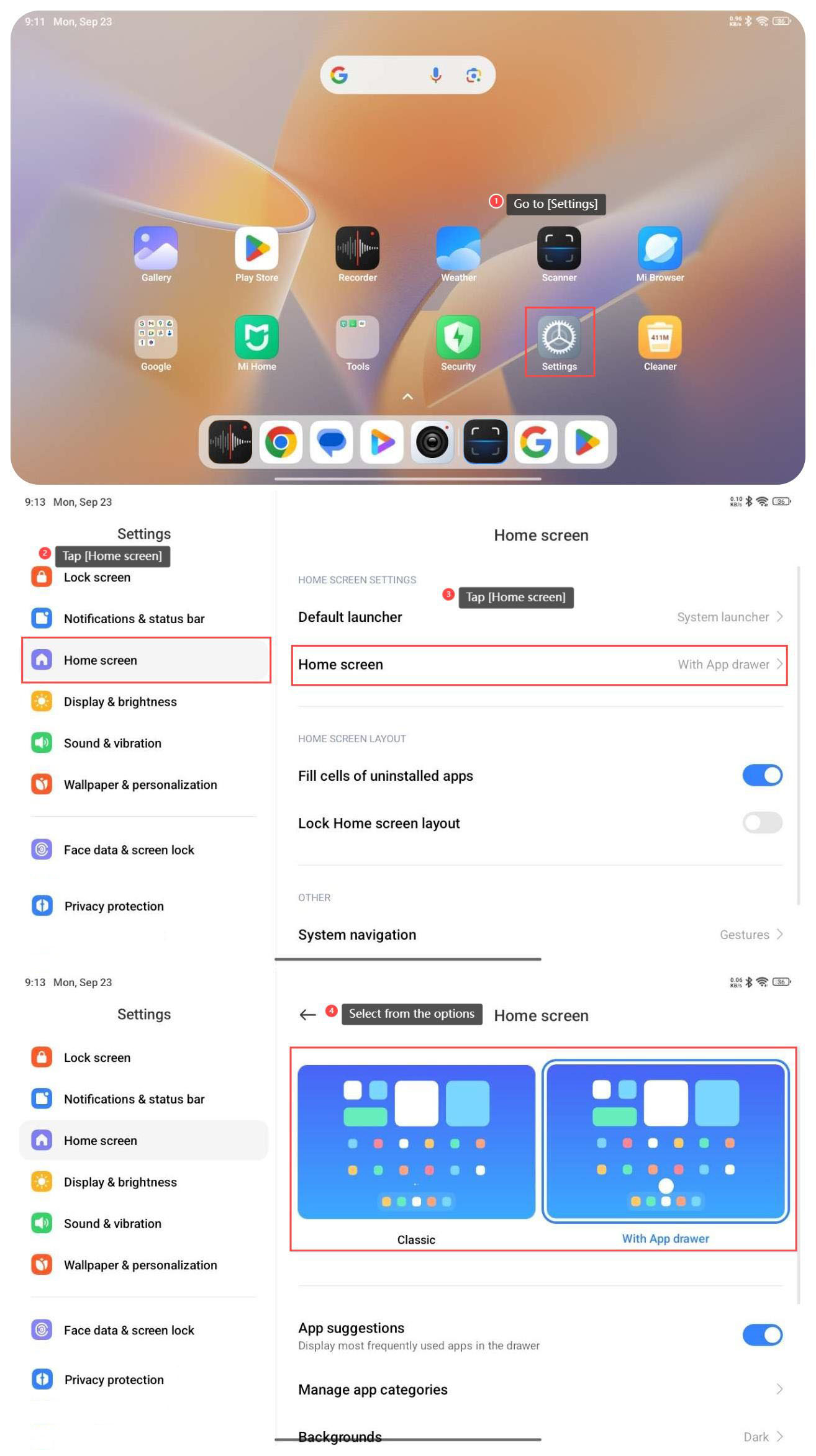[With App drawer] 中選擇。