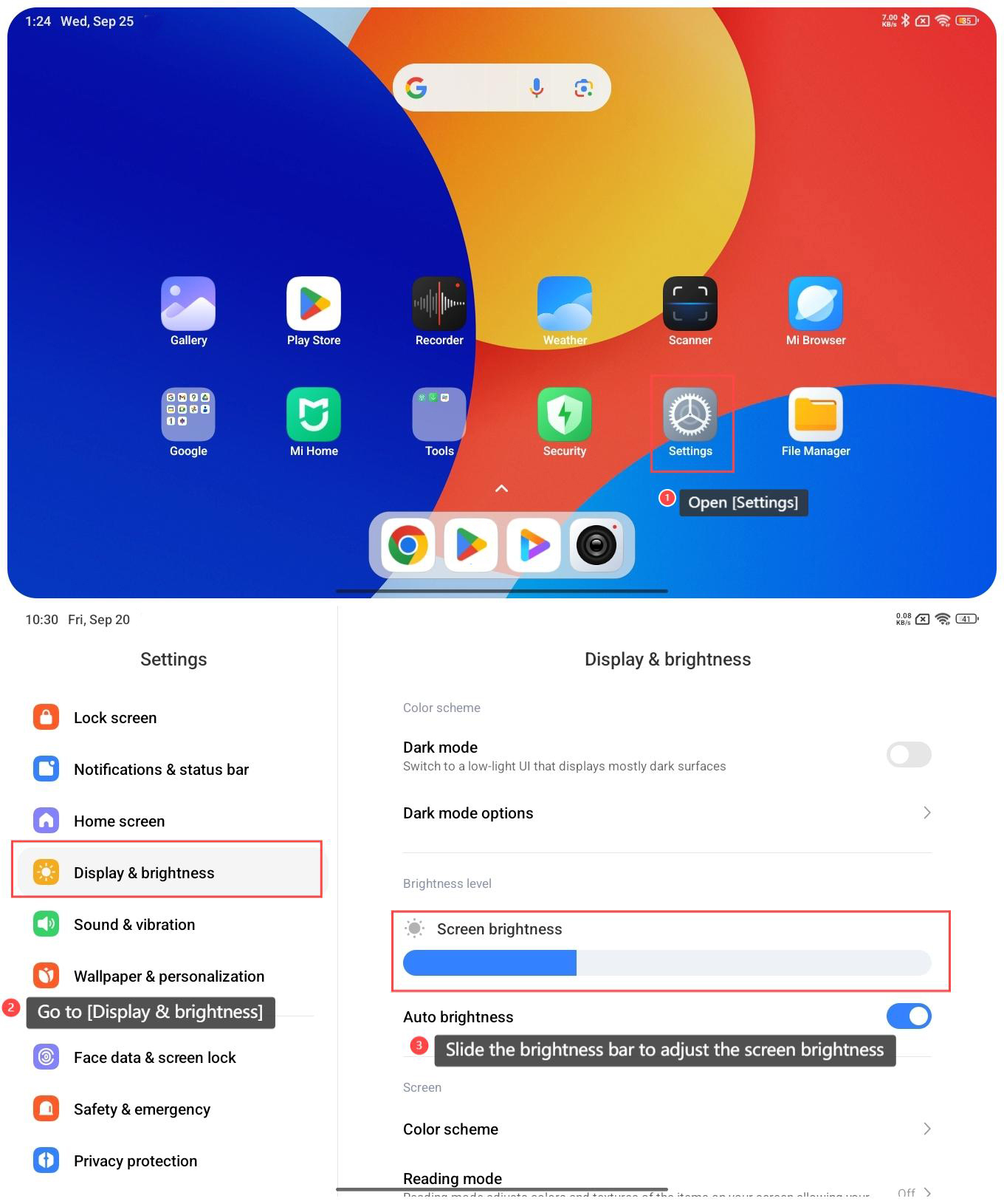 3. 滑動亮度條以調整螢幕亮度。