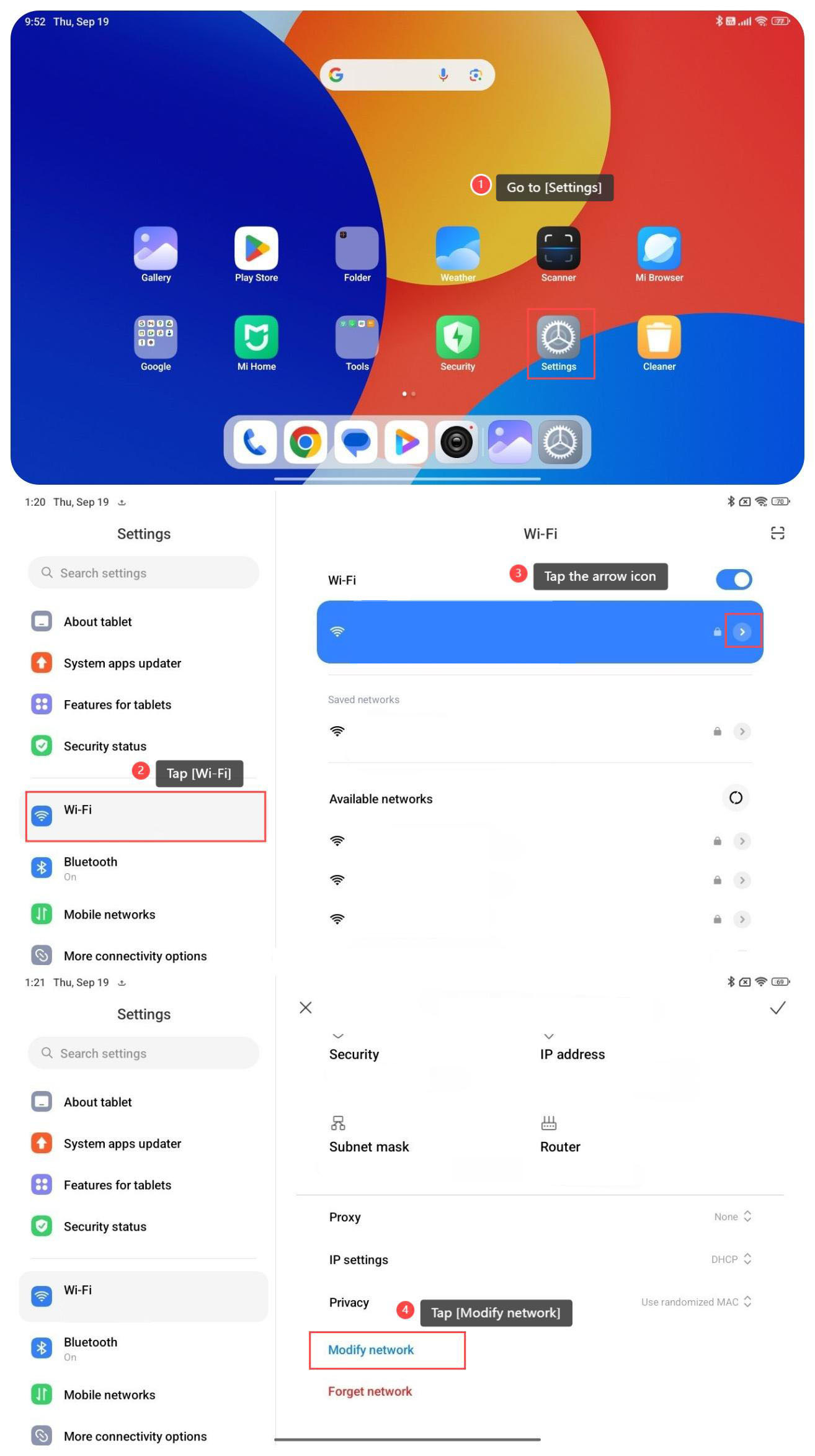 如何修改 Redmi Pad SE 8.7 4G 上的Wi-Fi網路?