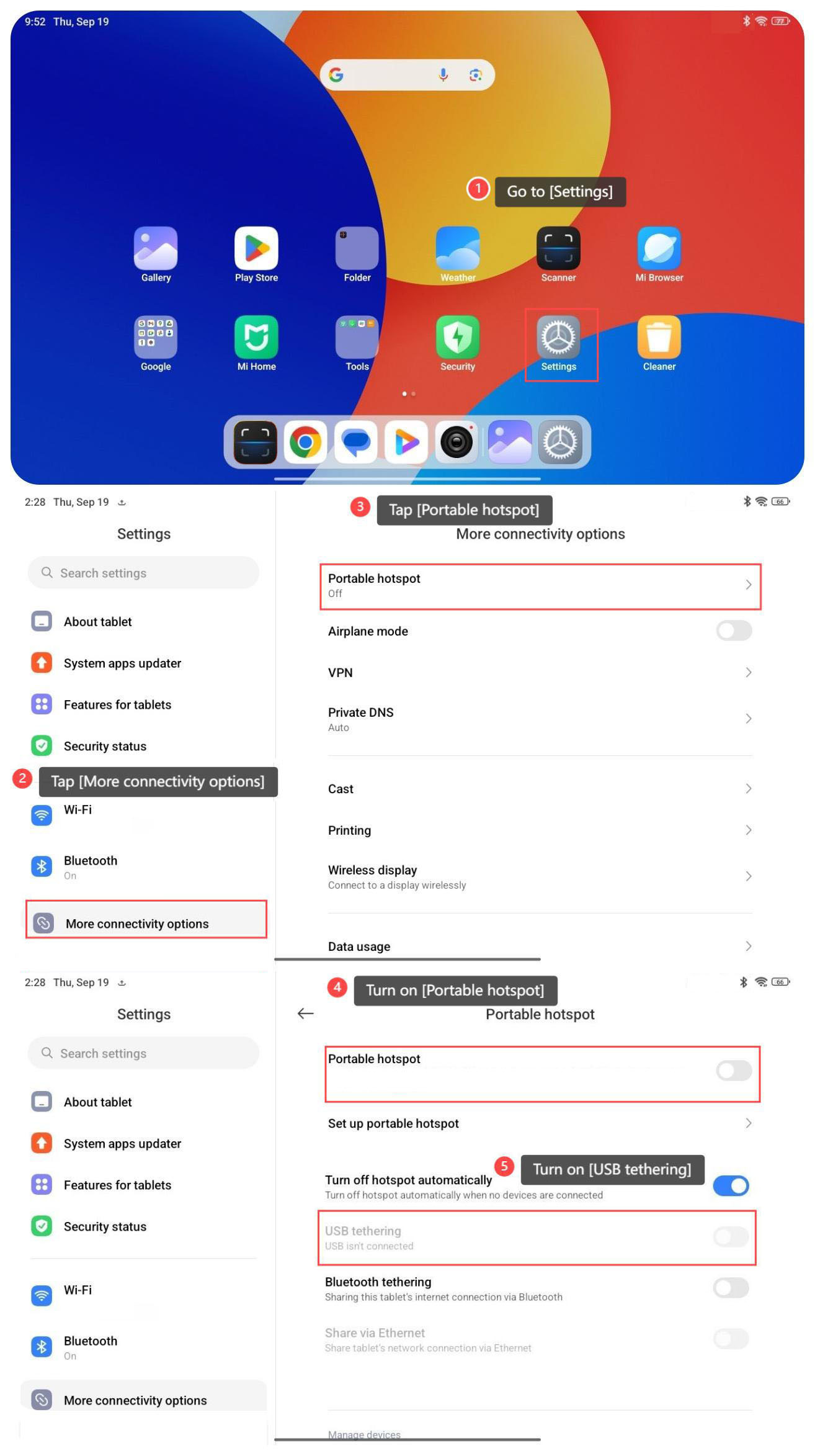 要通過USB共用平板電腦的熱點,請參考以下步驟: