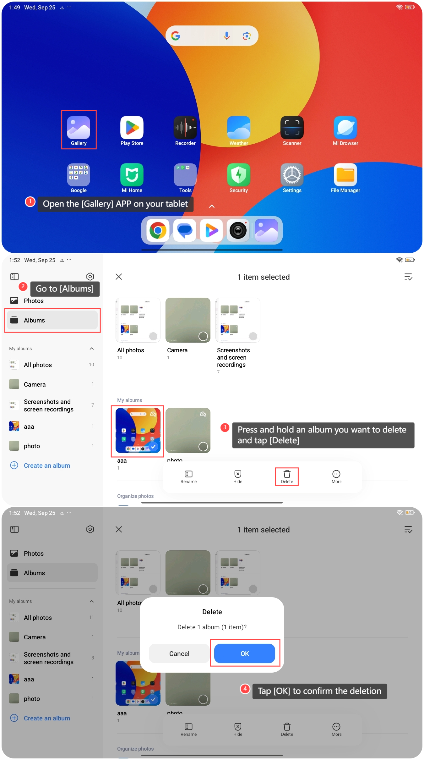 如何在 Redmi Pad SE 8.7 的 Gallery 中刪除相冊?