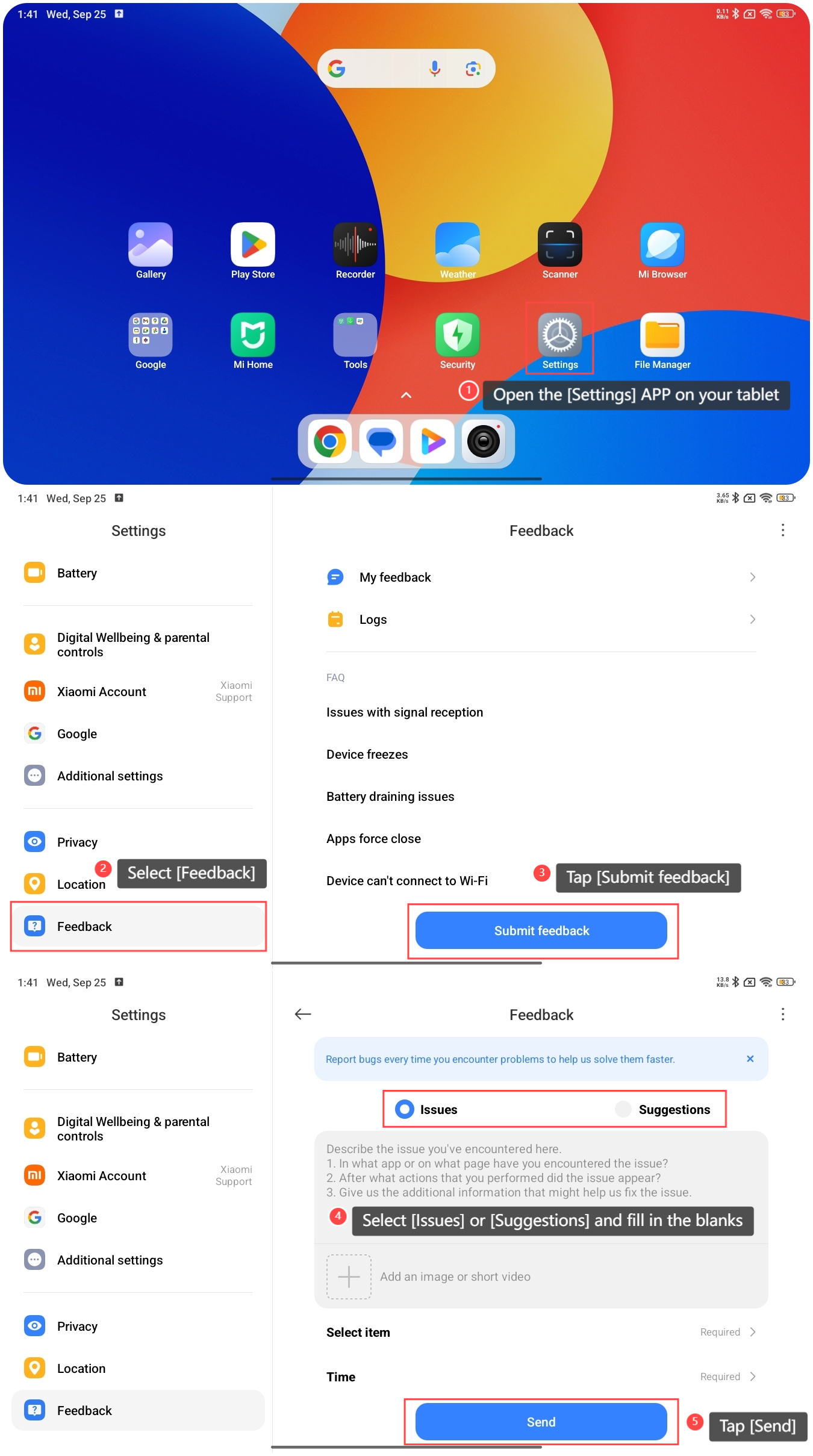 要提交對 Redmi Pad SE 8.7 4G 的反饋,請參考以下步驟: