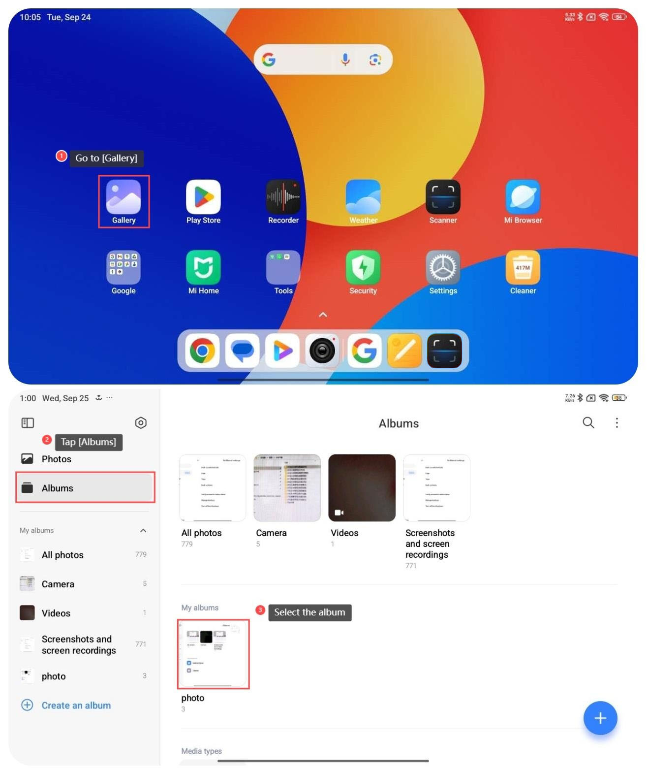 如何將照片添加到 Redmi Pad SE 8.7 4G 上的某個相冊?