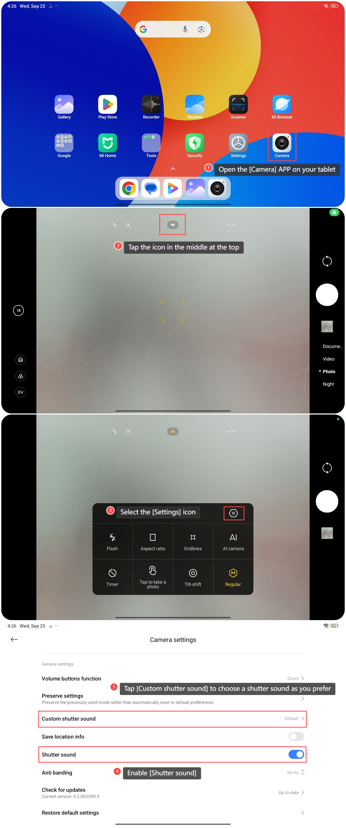 在 REDMI Pad SE 8.7 上設置快門聲音可以在拍攝照片時提供聽覺反饋,説明您確認拍攝,併為拍攝過程添加有趣的元素,從而增強攝影體驗。