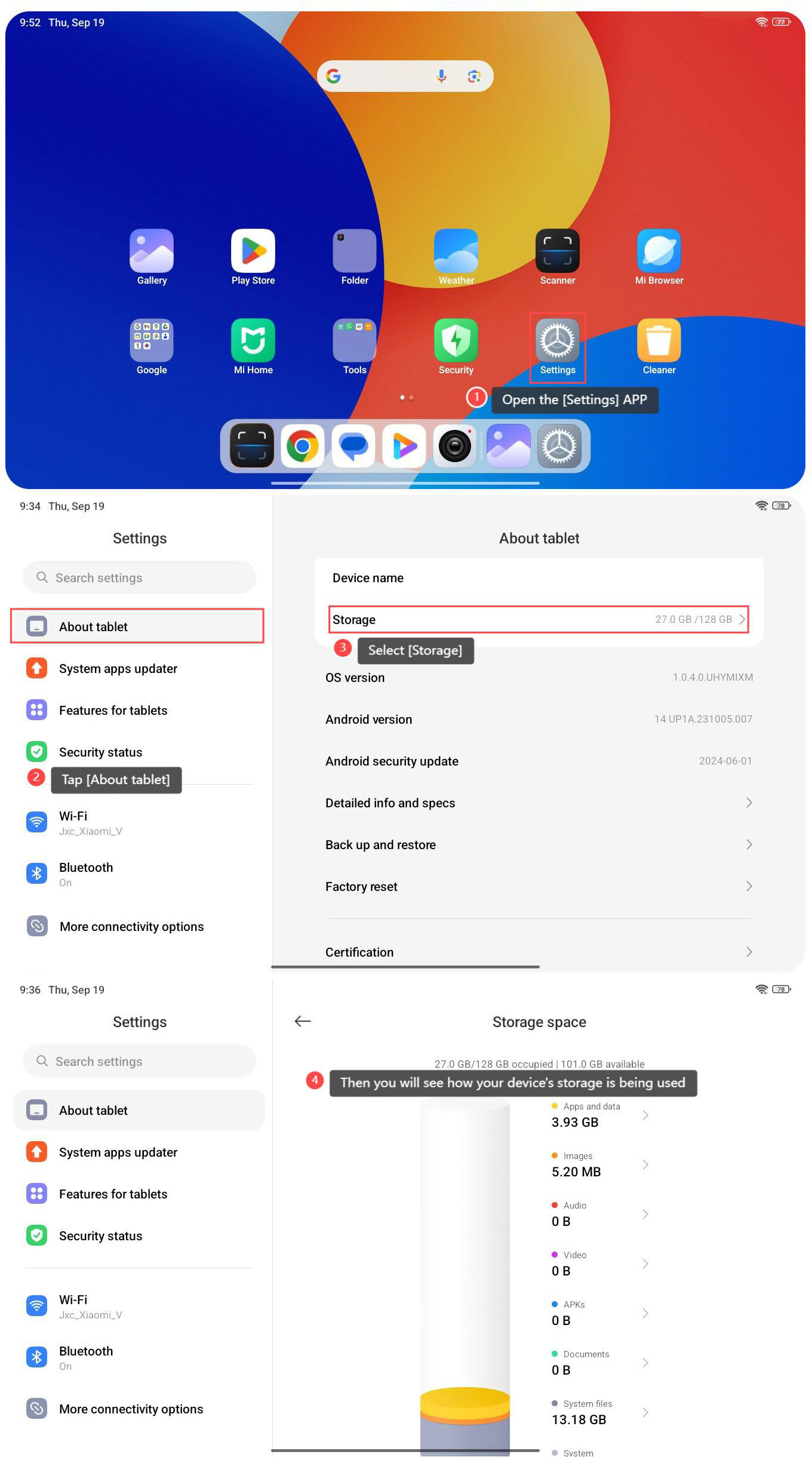 檢查 Redmi Pad SE 8.7 上的存儲詳細資訊涉及訪問有關可用儲存量、其利用方式以及任何其他可用儲存選項的資訊。通過檢查存儲詳細資訊,您可以監控存儲使用方式、優化空間,並確保有足夠的空間存儲應用程式、媒體和其他檔。