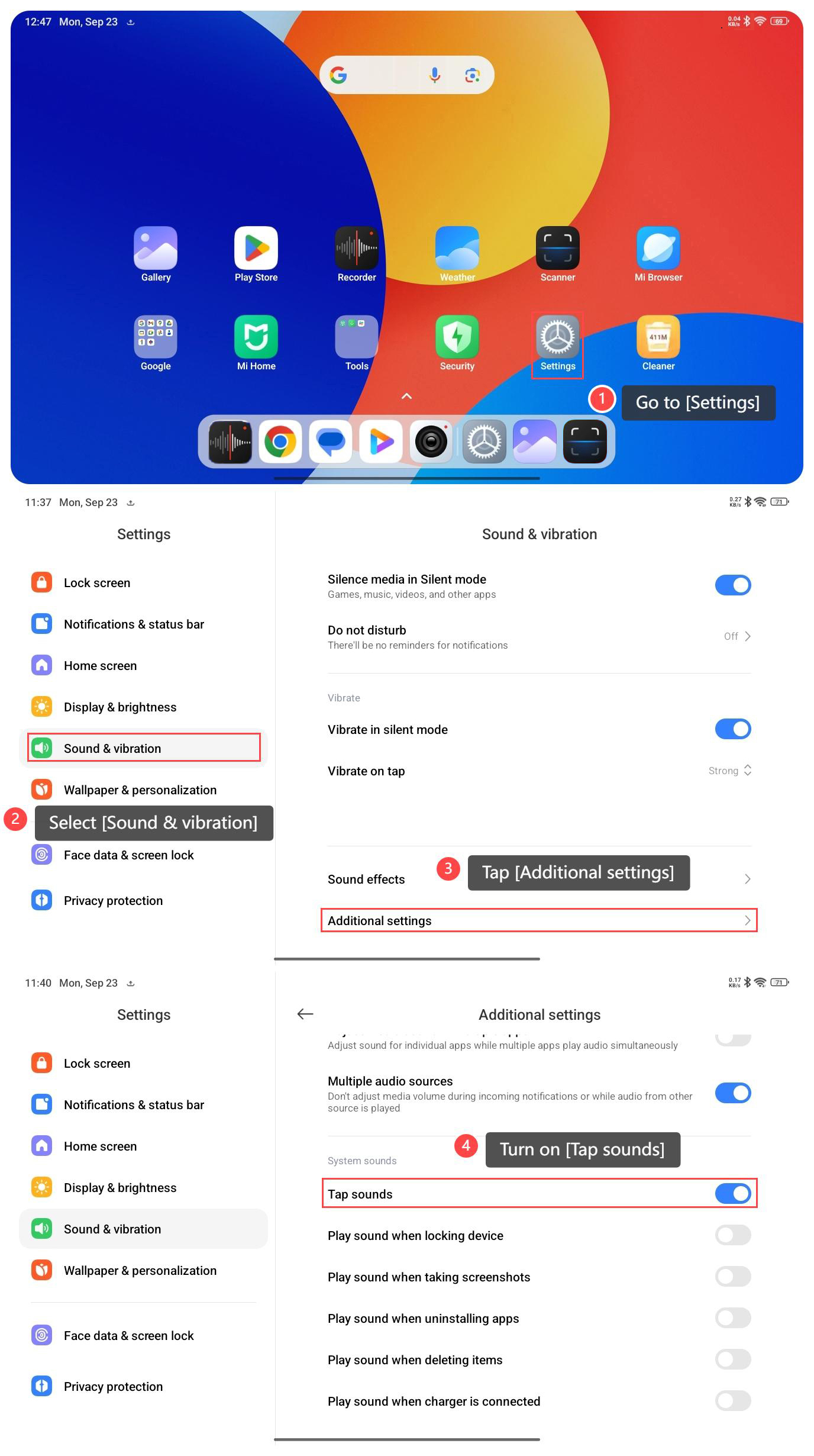 2. 如果 Tap 聲音打擾您或其他人,您可以選擇以相同的方式將其關閉。