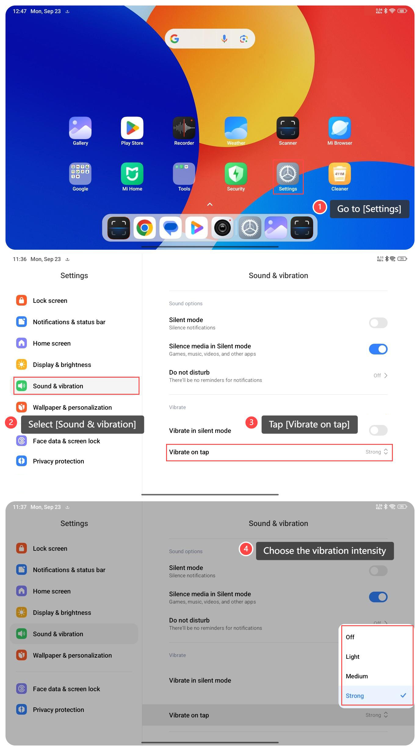 如何在 Redmi Pad SE 8.7 上設置點擊振動?