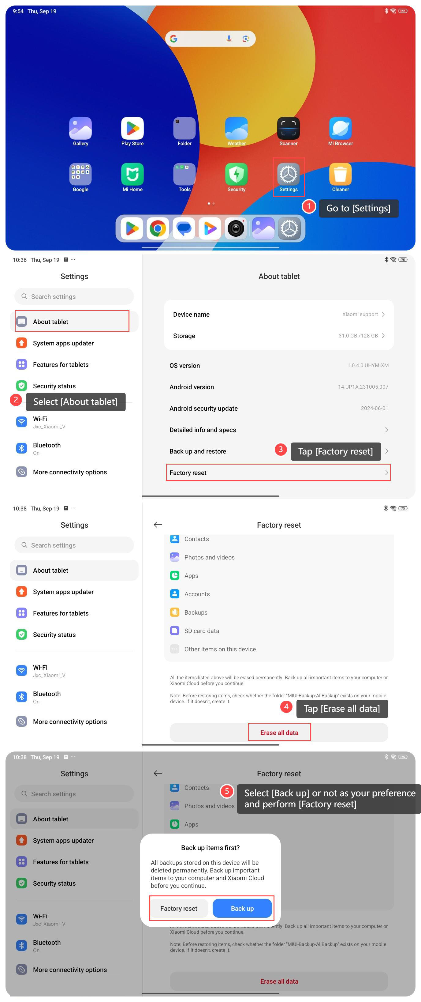 1. 執行恢復出廠設置將刪除平板電腦上的所有數據。在繼續重置之前,請確保備份所有重要數據;