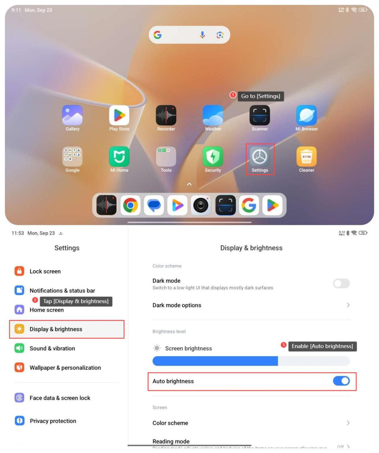 如何自動調整 Redmi Pad SE 8.7 的亮度?