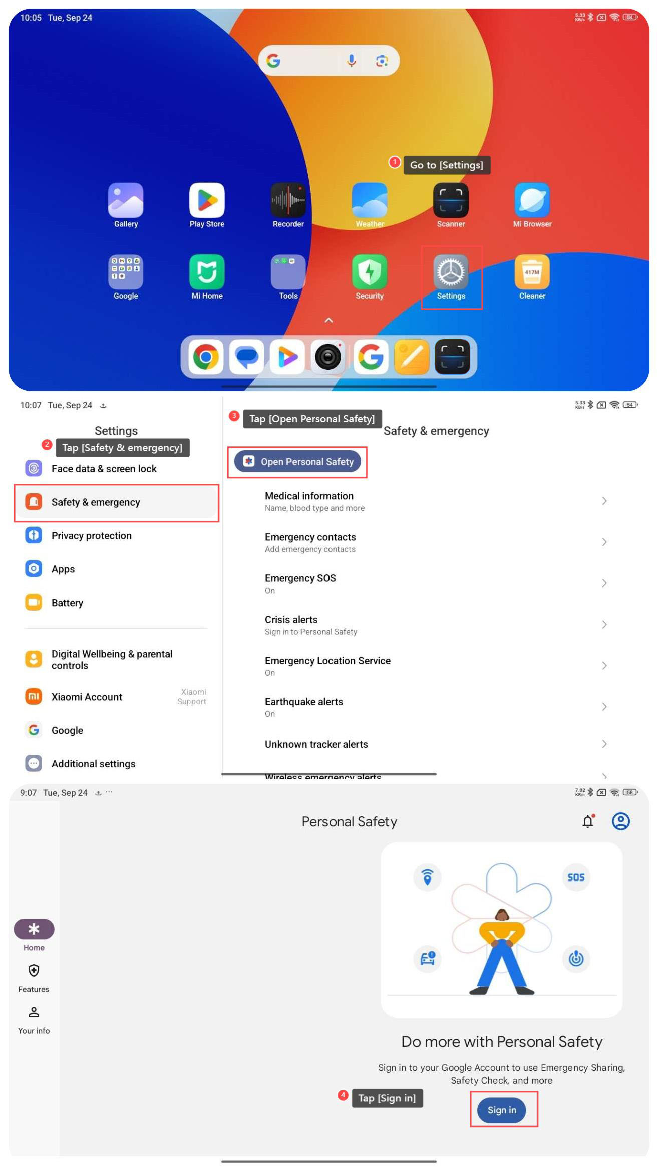 REDMI Pad SE 8.7 4G 支援開啟個人安全,可以在緊急情況下向指定聯繫人發送警報,允許您與受信任的聯繫人共用您的即時位置以確保安全,並讓您快速訪問緊急聯繫人和服務。開啟人身安全的功能將有助於增強人身安全,確保您在緊急情況下做好準備。
