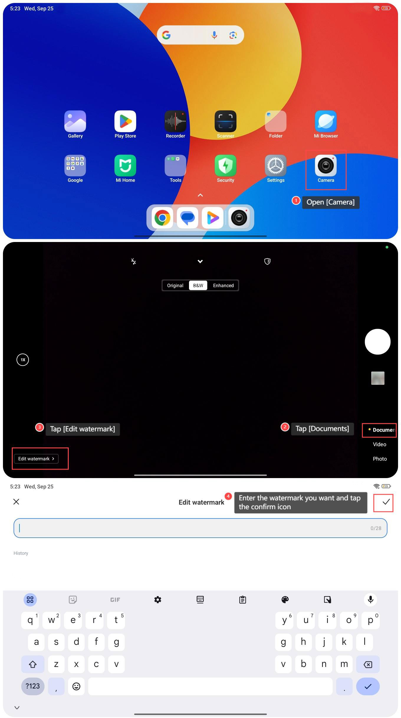要使用 Redmi Pad SE 8.7 的相機掃描文檔,請參閱以下步驟: