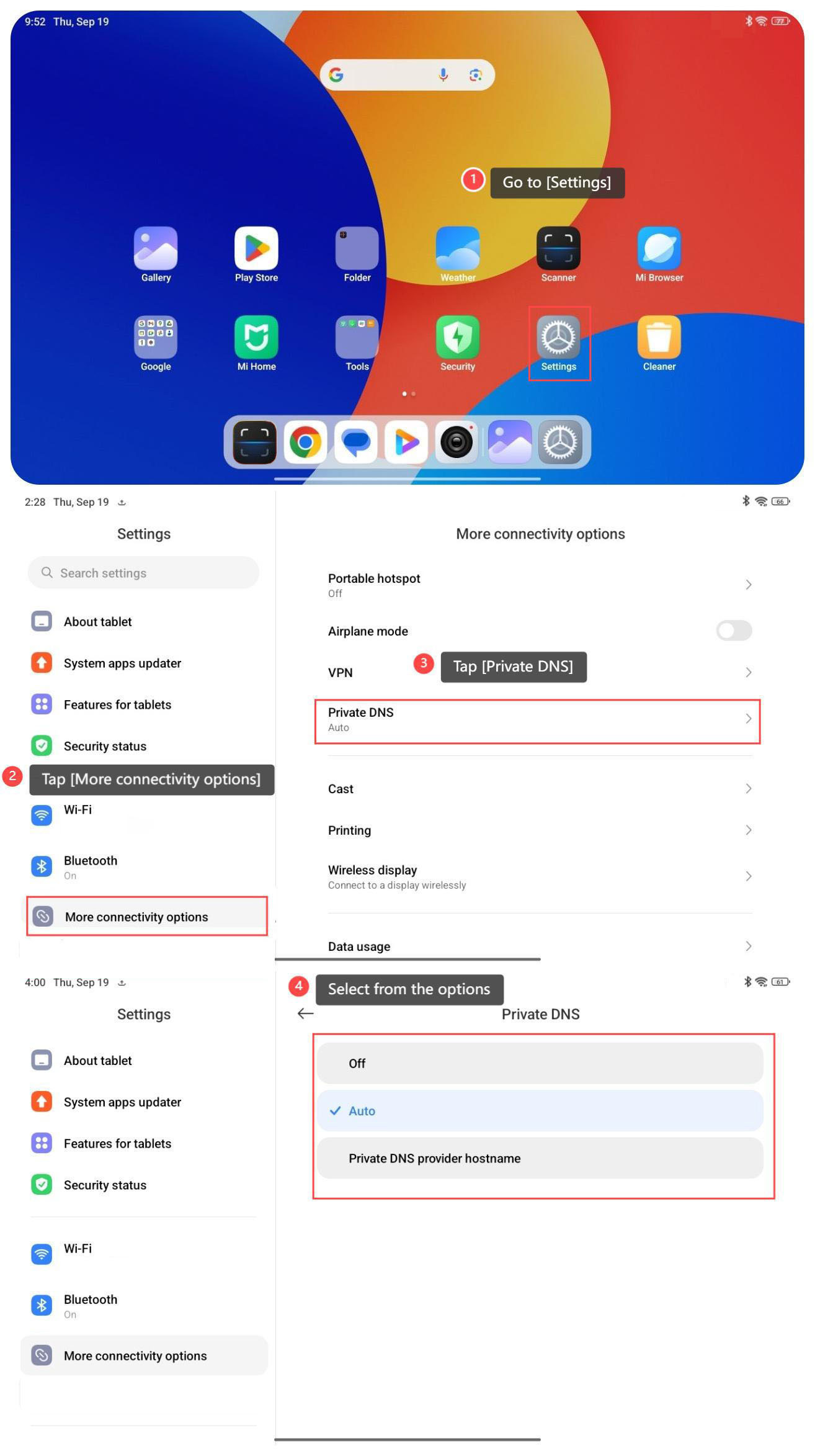 要在平板電腦上設置 Private DNS,請參考以下步驟: