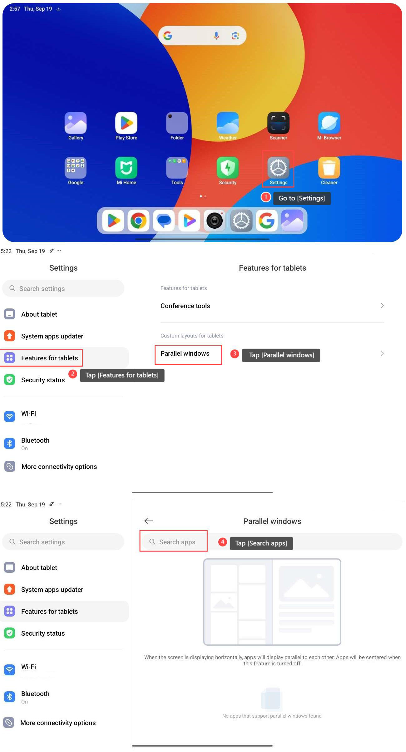4. 點擊 [搜索應用程式],您可以 搜索 哪些應用程式支援 Parallel Windows。