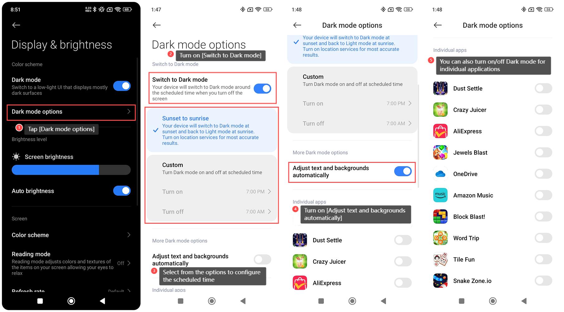 5. 您還可以為單個應用程式開啟/關閉深色模式。