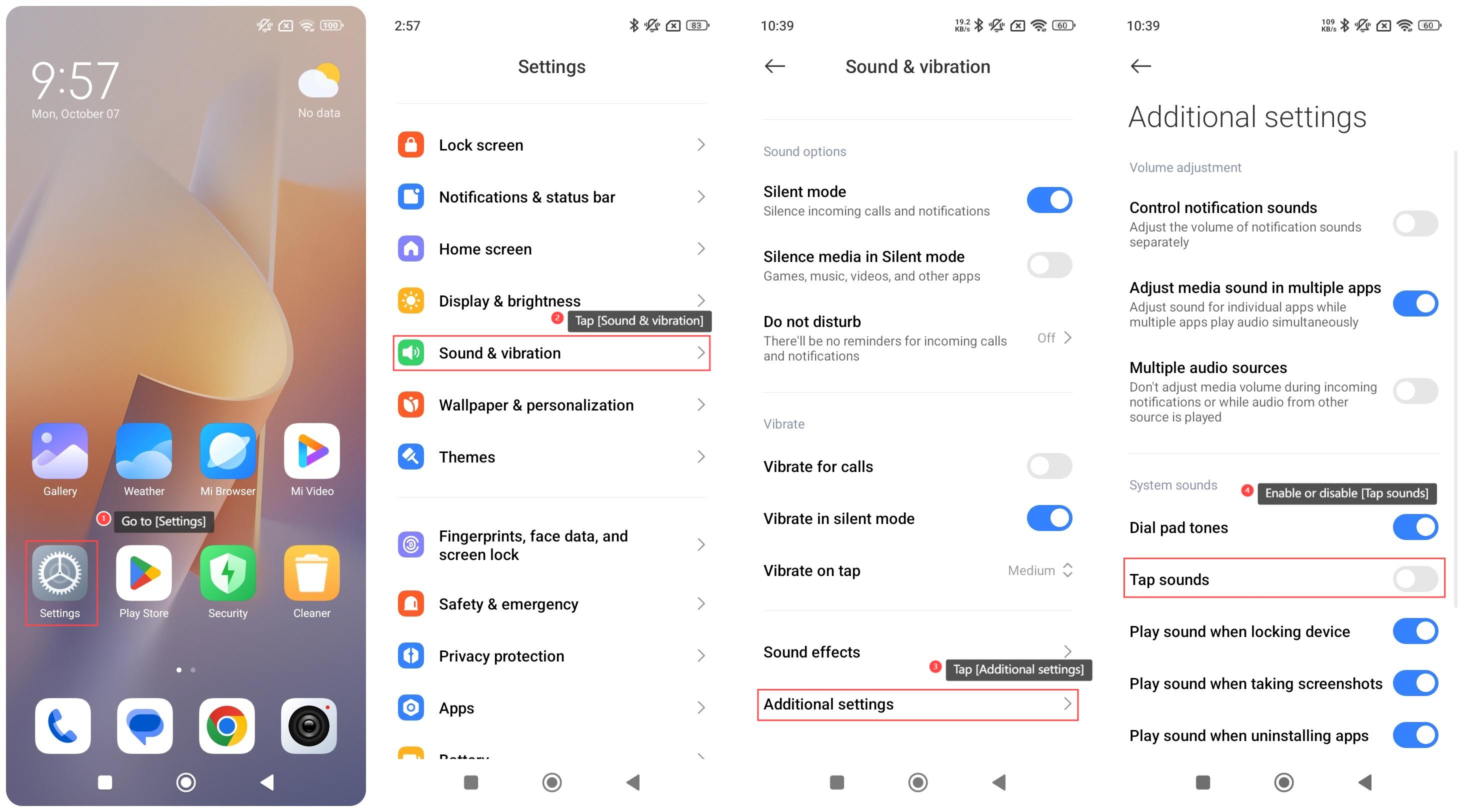 2. 如果點擊聲音打擾您,您可以選擇以相同的方式禁用它。