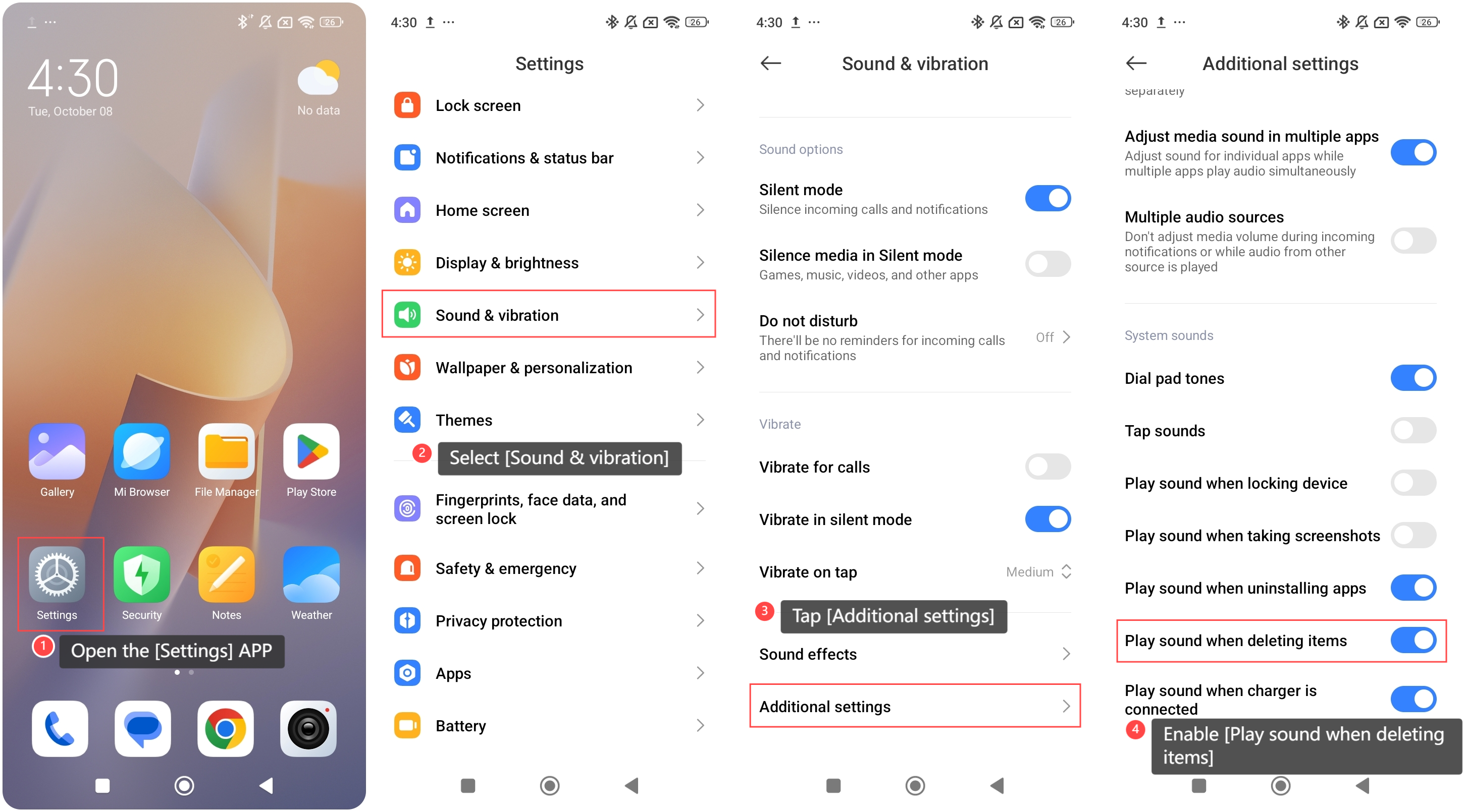 2. 檢查系統或通知音量,確保音量沒有靜音或設置得太低。刪除聲音是系統音訊的一部分,因此它需要一個可聽見的音量級別。