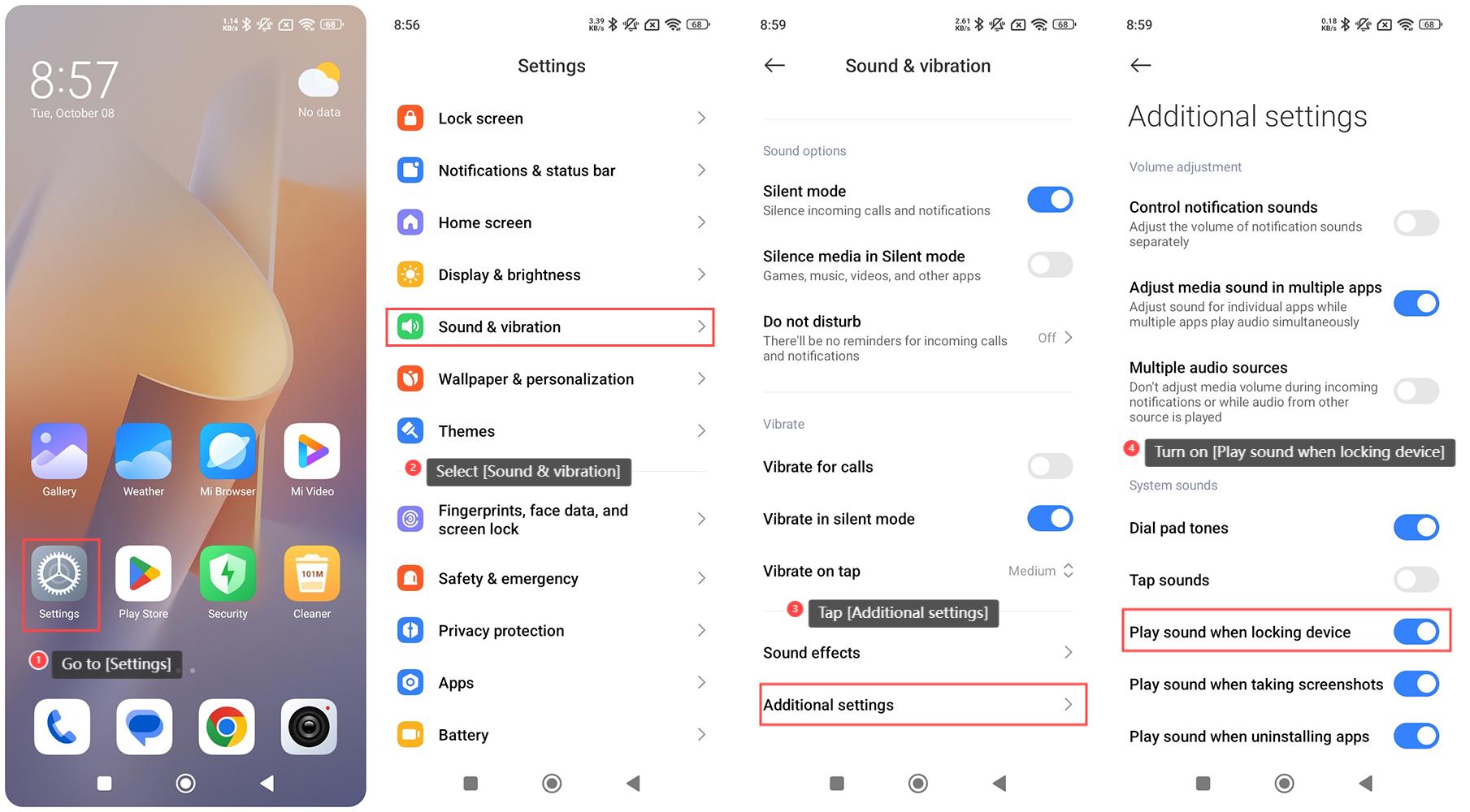 如何使 Redmi 13C 在鎖定設備時播放聲音?