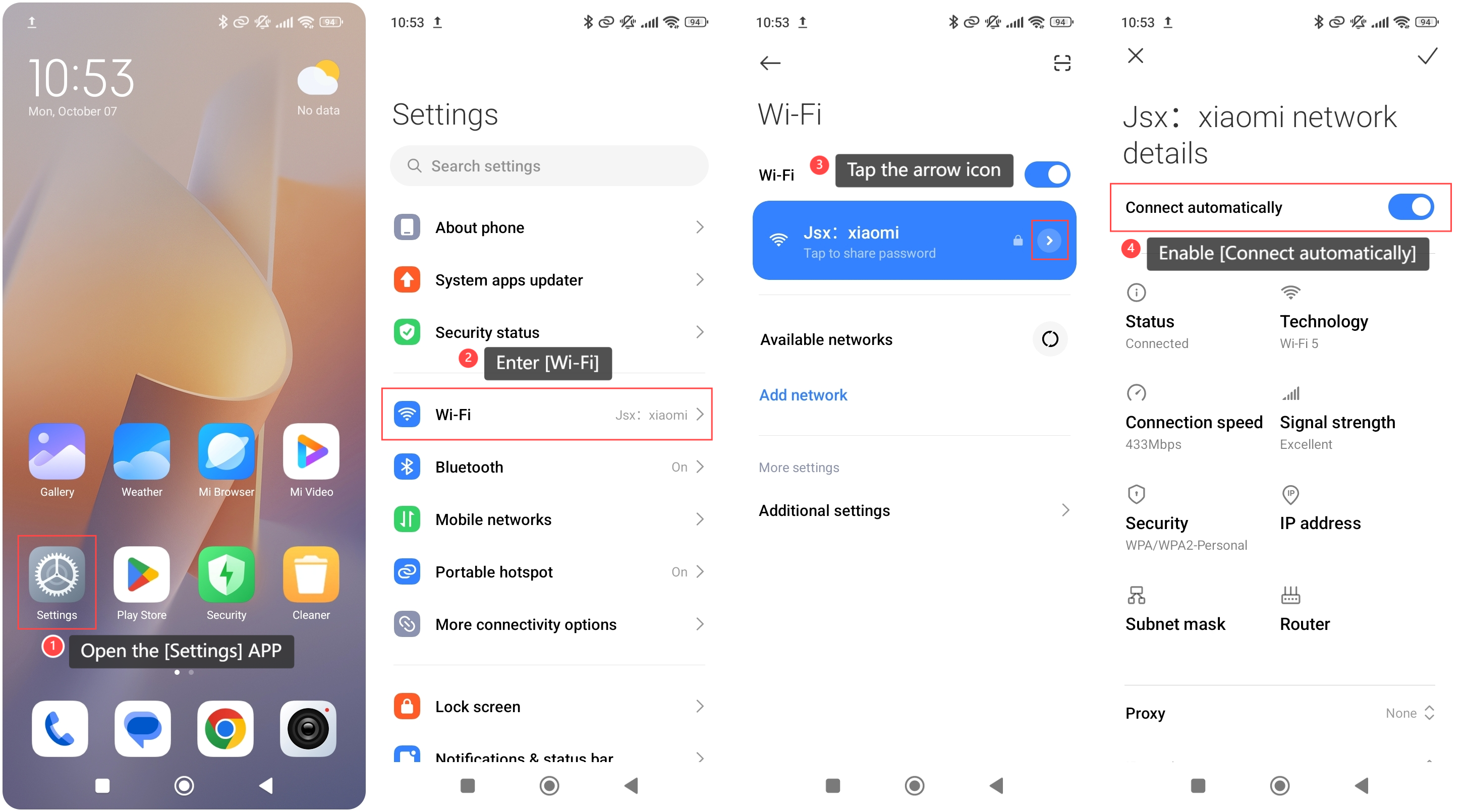 在 Redmi 13C 上為 Wi-Fi 網路啟用「自動連接」 功能