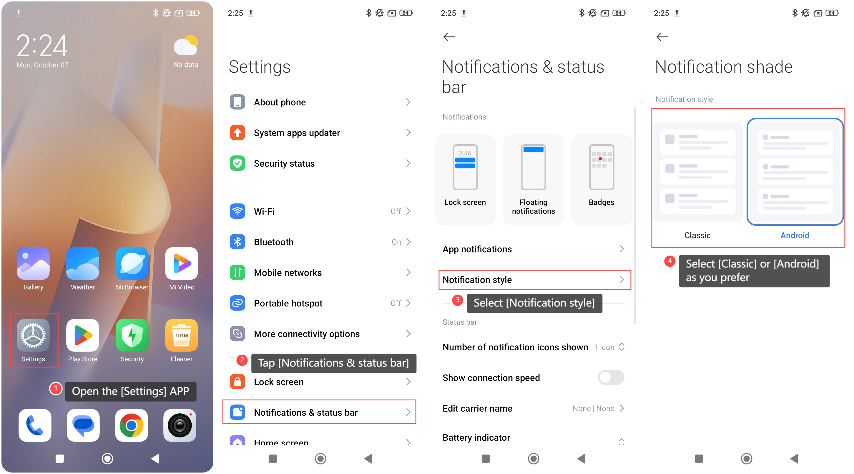 Redmi 13C 上的通知欄提供對各種消息和警報的快速訪問。有兩種通知欄樣式,包括 Classic 和 Android。