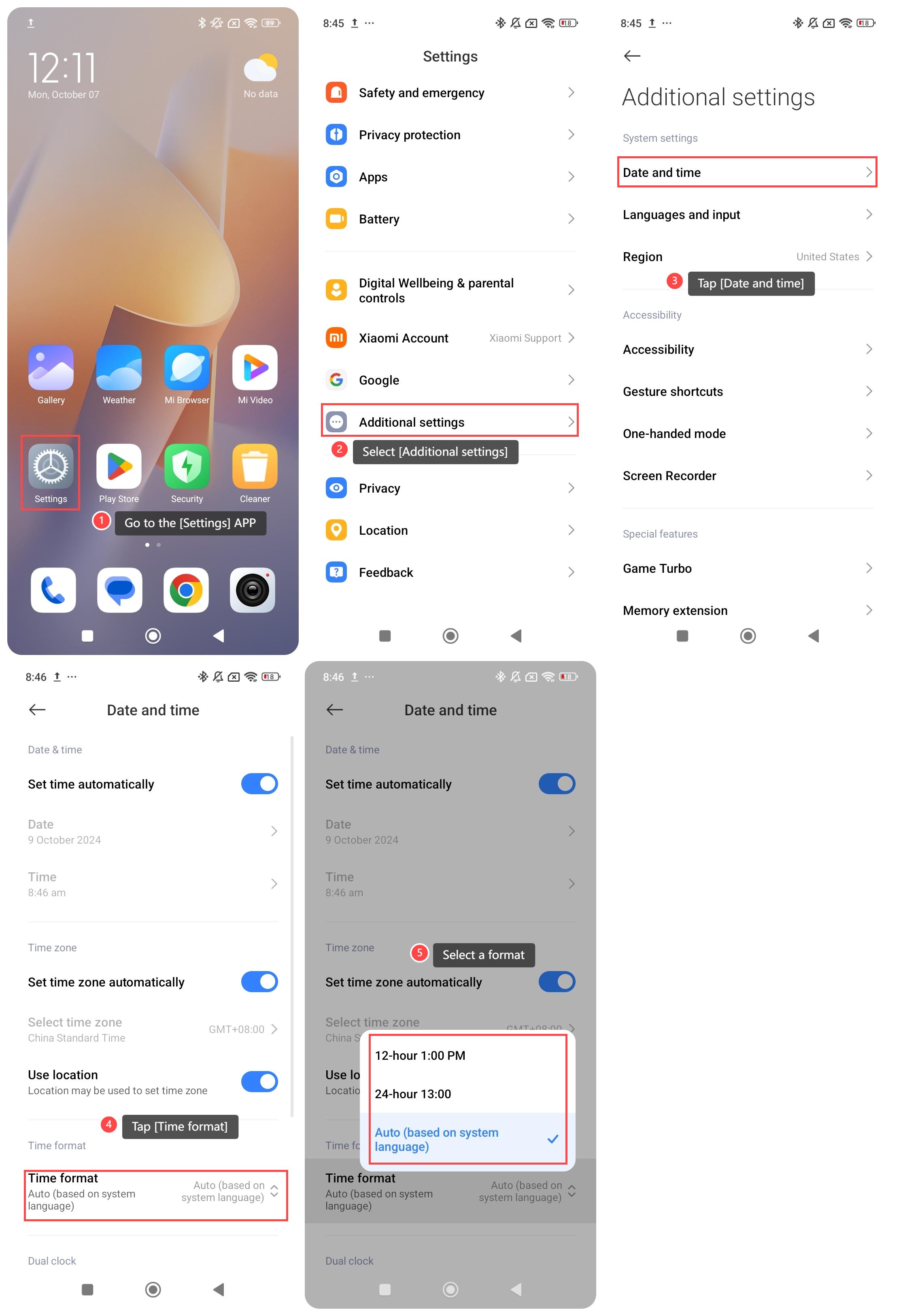 以12小時格式、24小時格式和Auto格式(基於系統的語言)。這 3 種格式的用途相同,即表示時間,但它們表示小時的方式不同。您可以根據自己的文化習俗和個人喜好選擇時間格式。