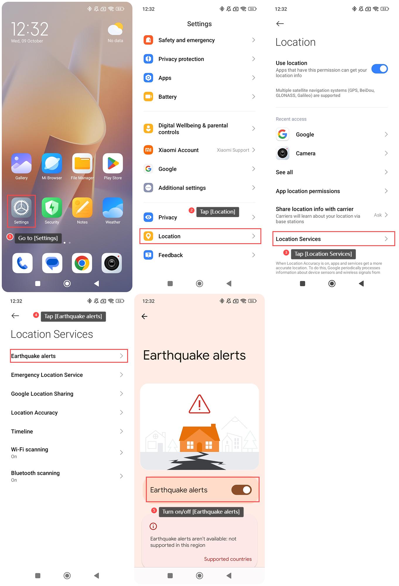 如何在 Redmi 13C 5G 上打開/關閉地震警報?