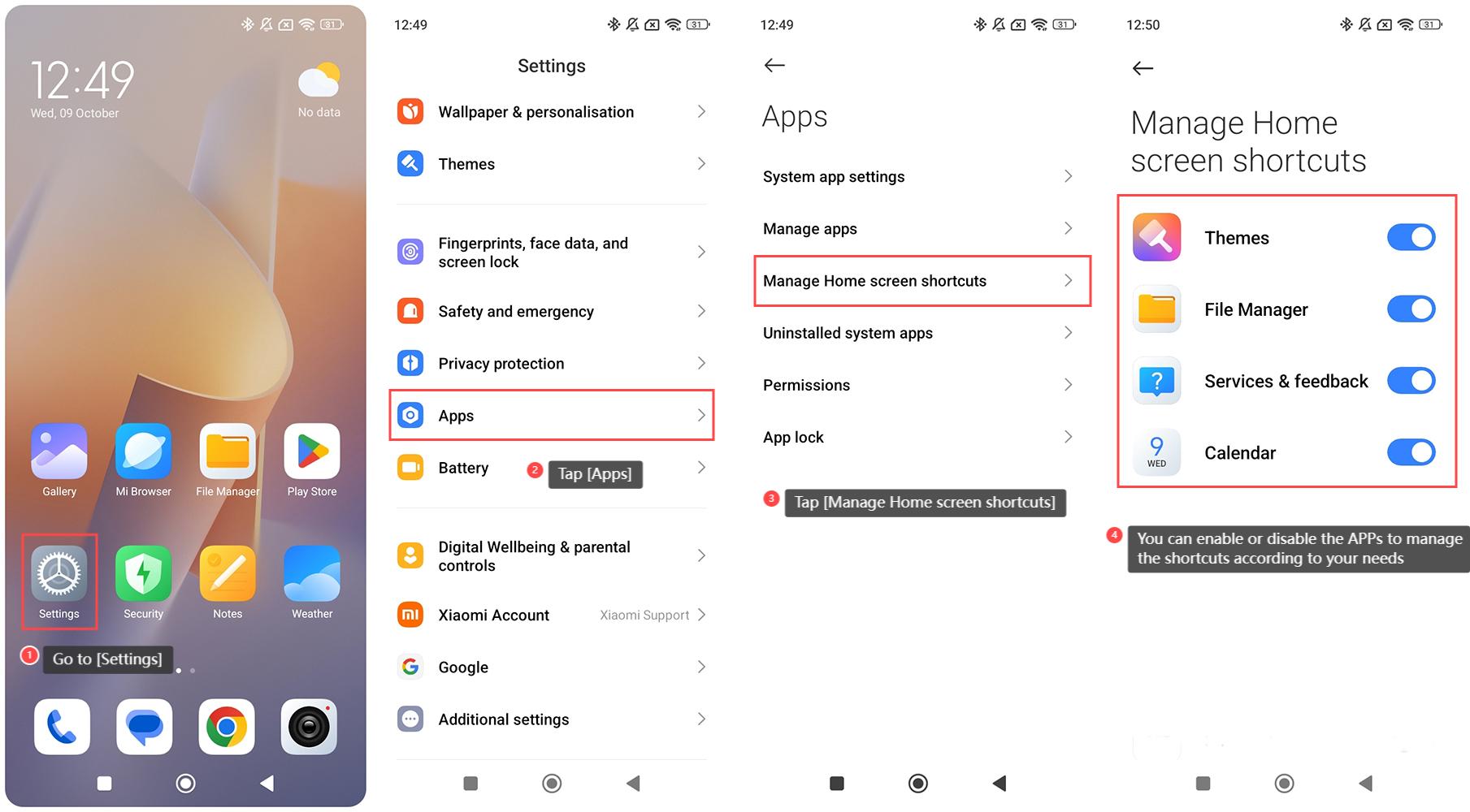 如何管理 REDMI 13C 上的主螢幕快捷方式?