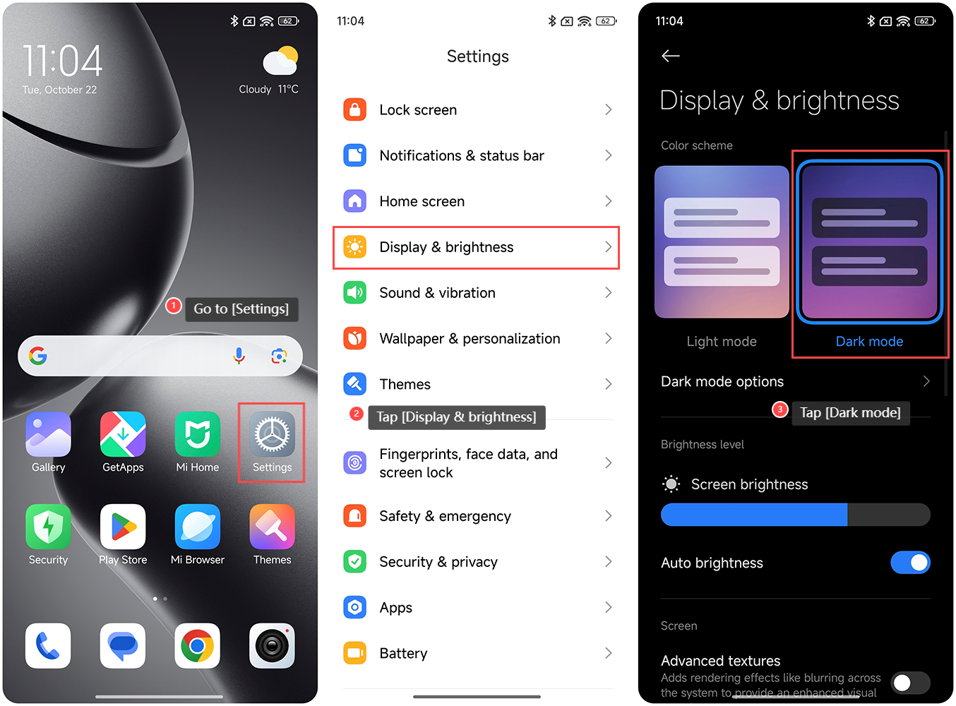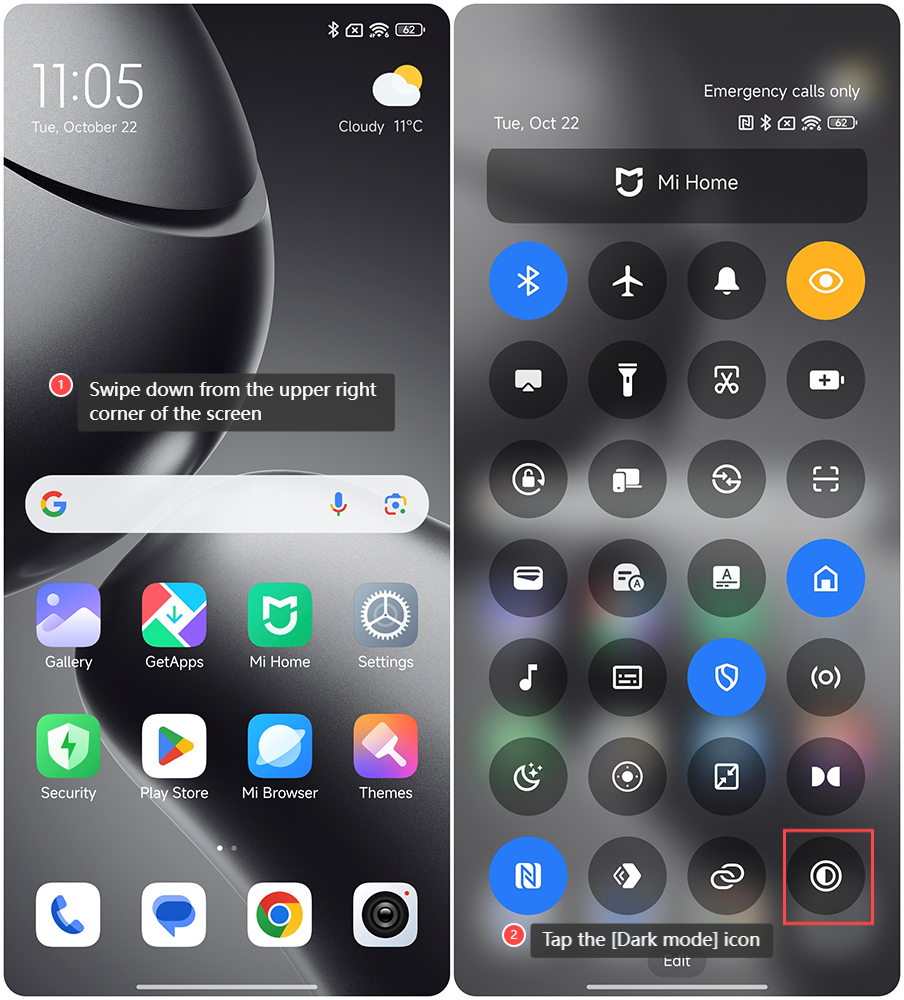 要在 Xiaomi 14T 上設置 Dark 模式