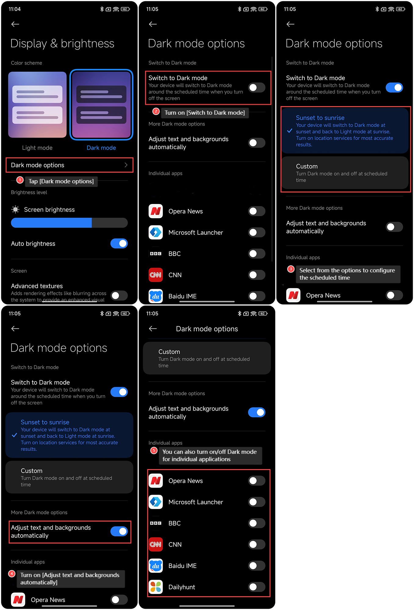 5. 您還可以為單個應用程式開啟/關閉深色模式。
