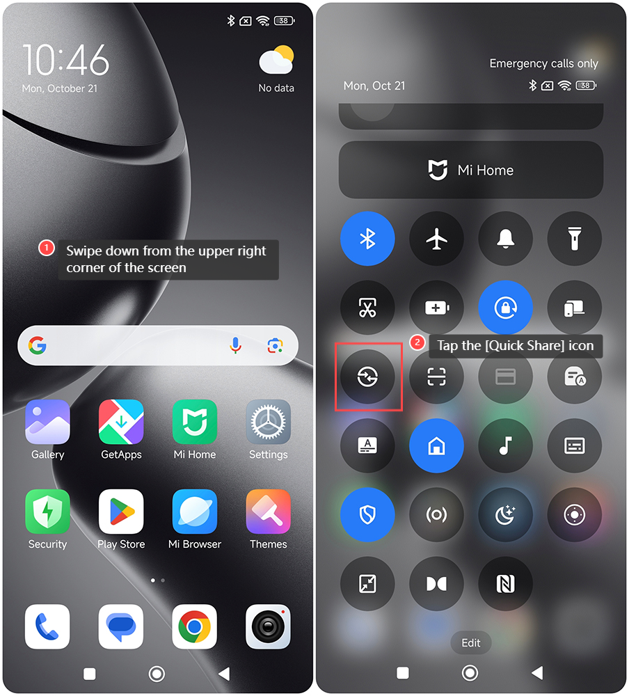 要與附近的設備共用 Xiaomi 14T 上的檔,請參考以下方法: