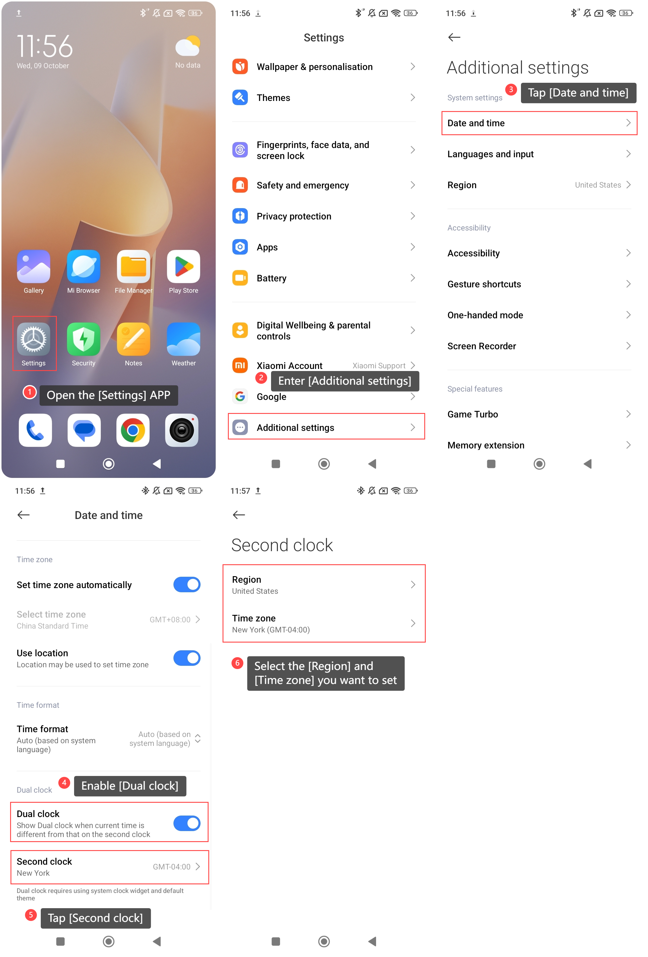 1. 雙時鐘將顯示在鎖屏和主螢幕上;