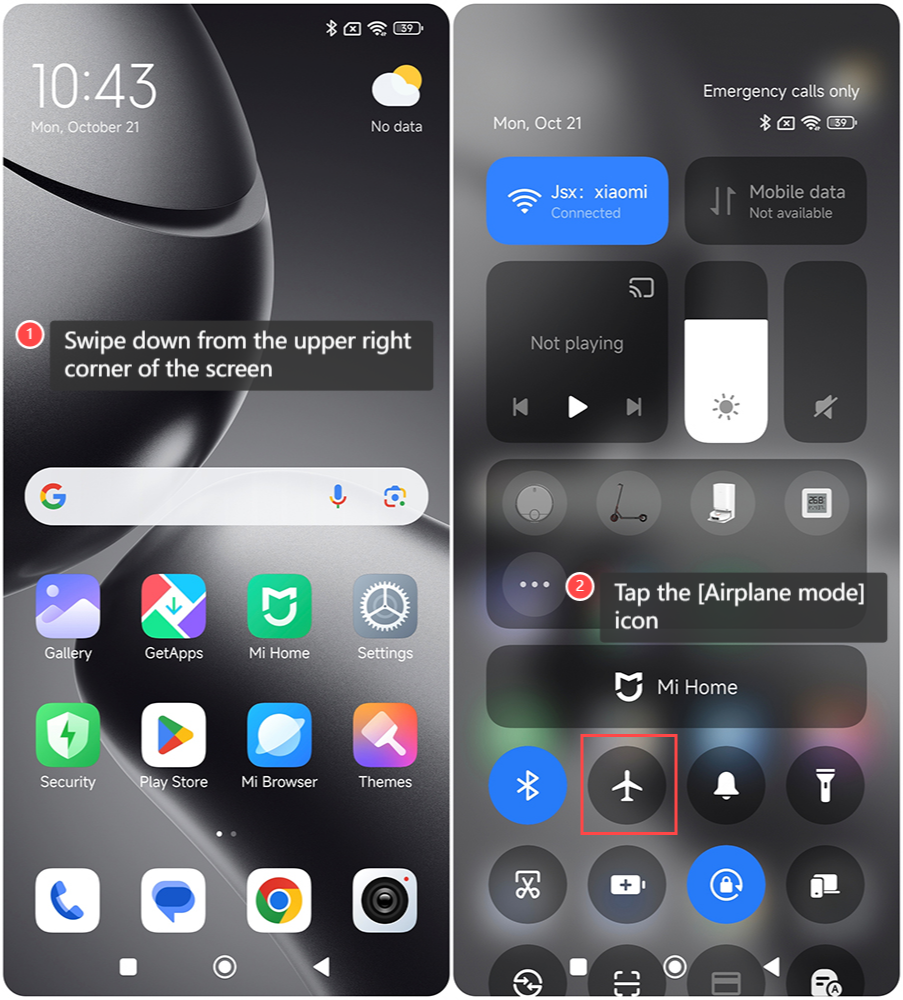 開啟 Xiaomi 14T Pro 飛行模式,請參考以下方法: