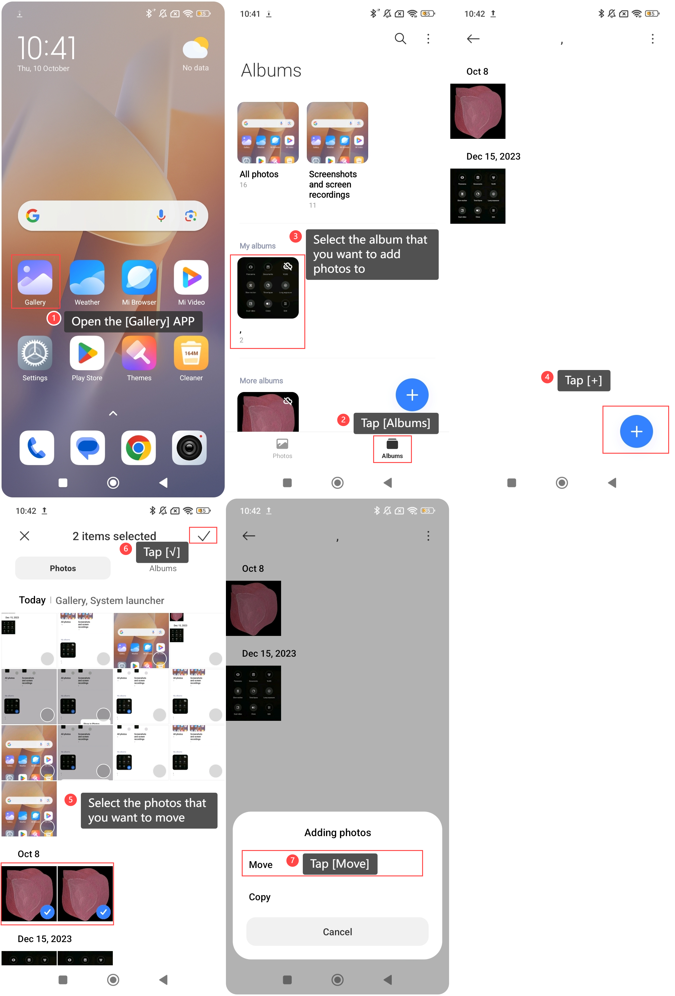 如何將照片添加到 Redmi 13C 上的某個相冊?