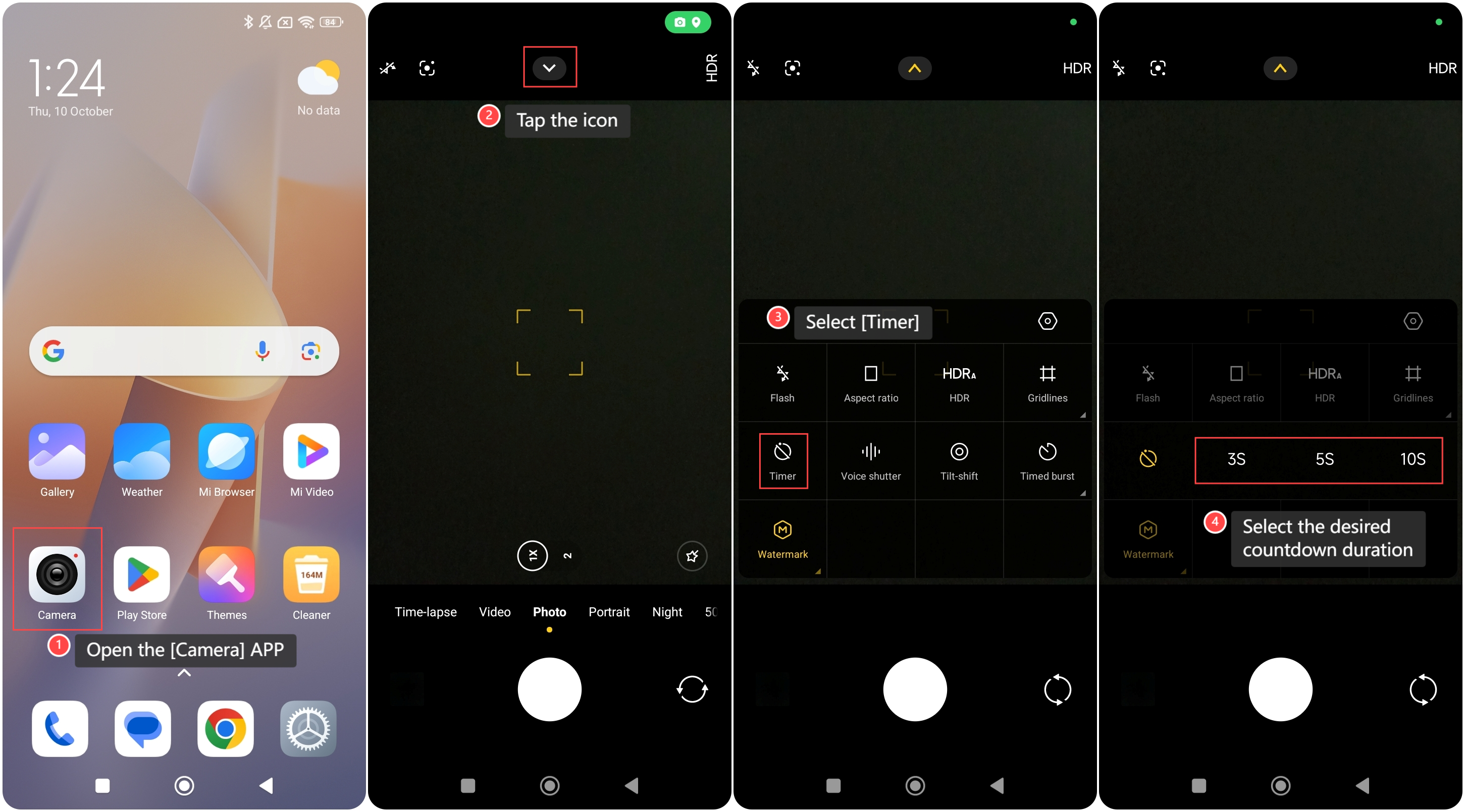 如何在 REDMI 13C 上用計時器拍照?