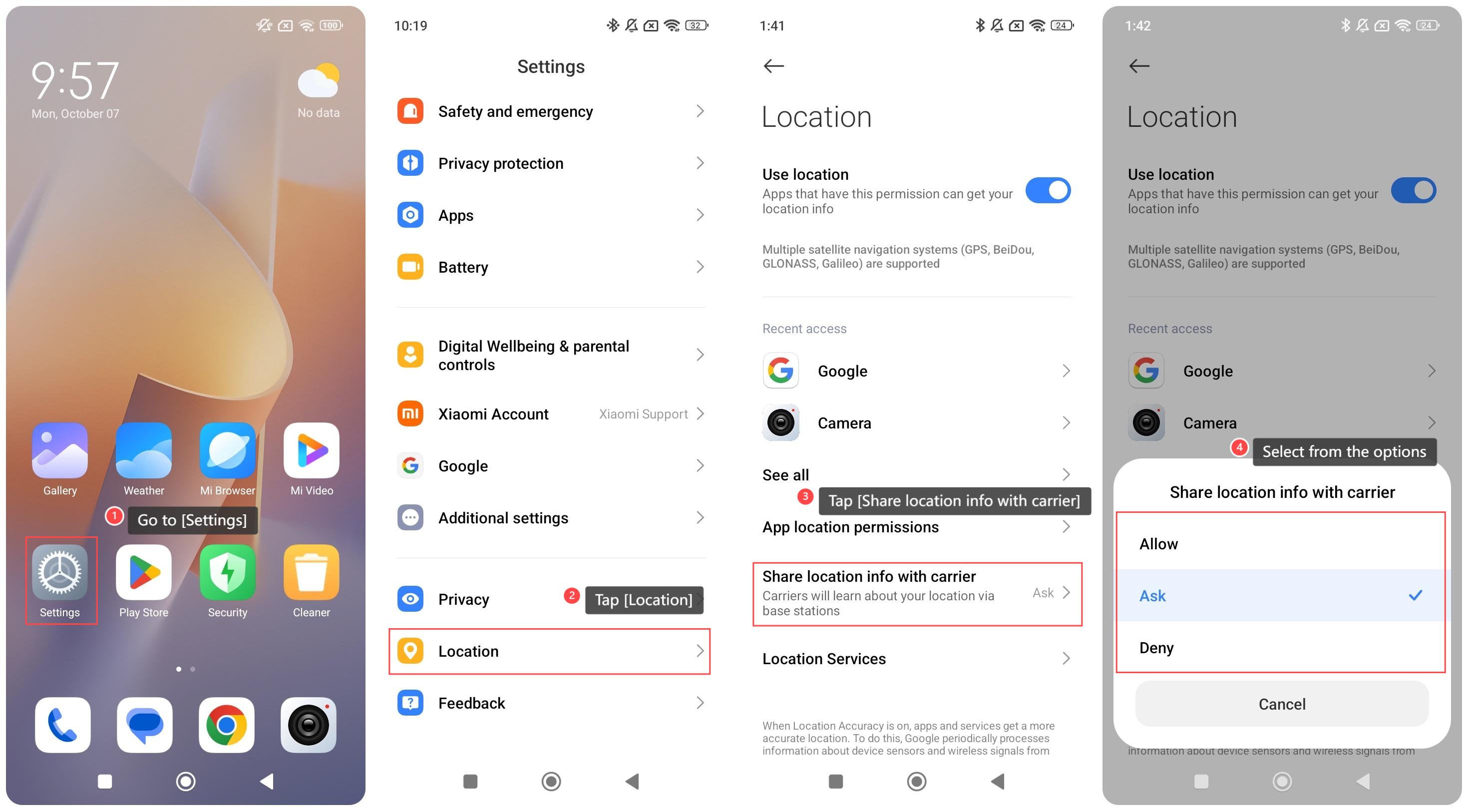 要允許運營商詢問您手機上的位置資訊,請參考以下步驟: