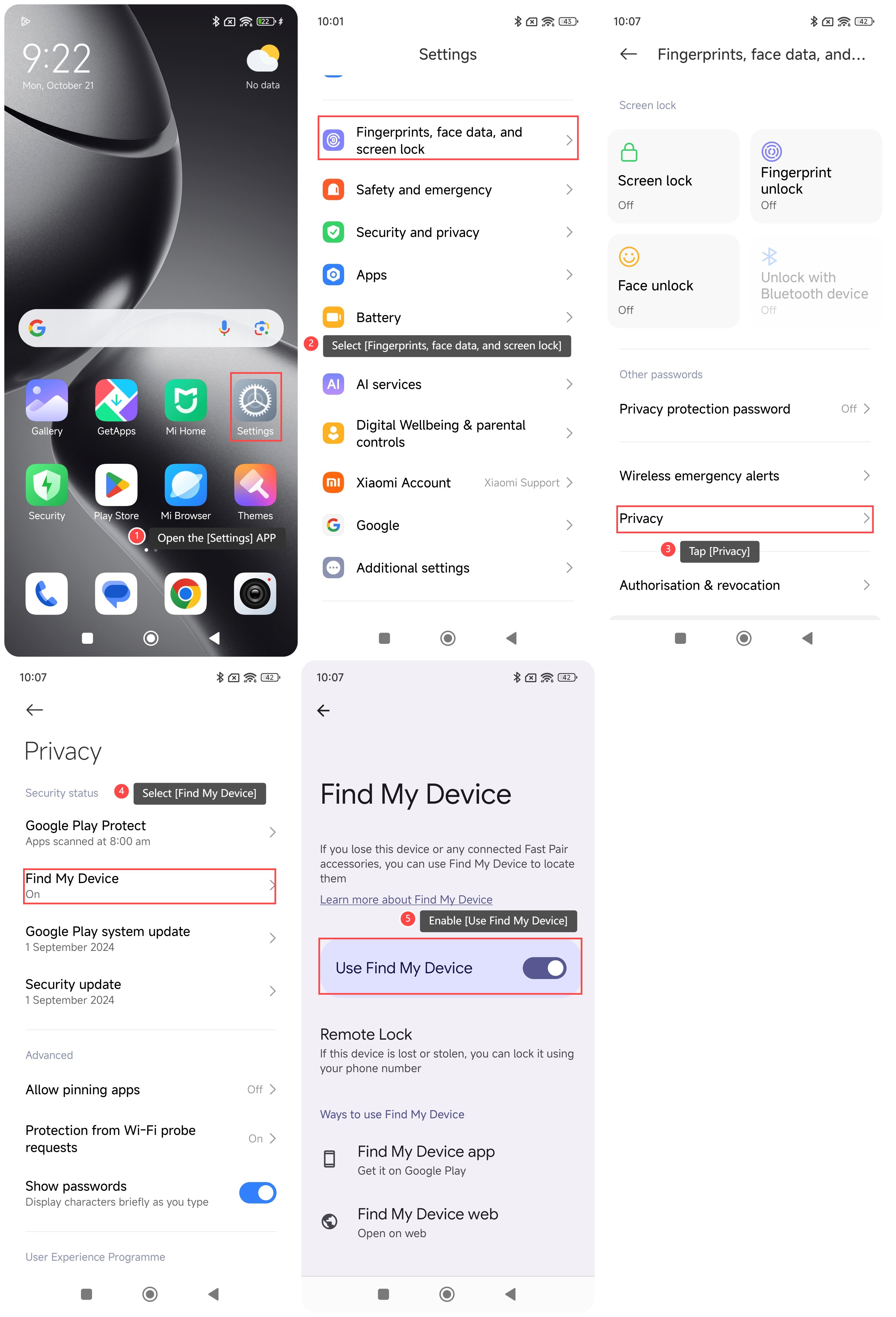 “查找我的設備”是 Xiaomi 14T Pro 上的一項功能,可説明您在手機丟失或被盜時找到手機。通過使用您的 Google 帳戶,您可以在地圖上跟蹤設備的位置、遠端撥打、鎖定甚至擦除其數據以保護您的隱私。要使用此功能,您需要確保在設置中啟用位置服務和查找我的設備。