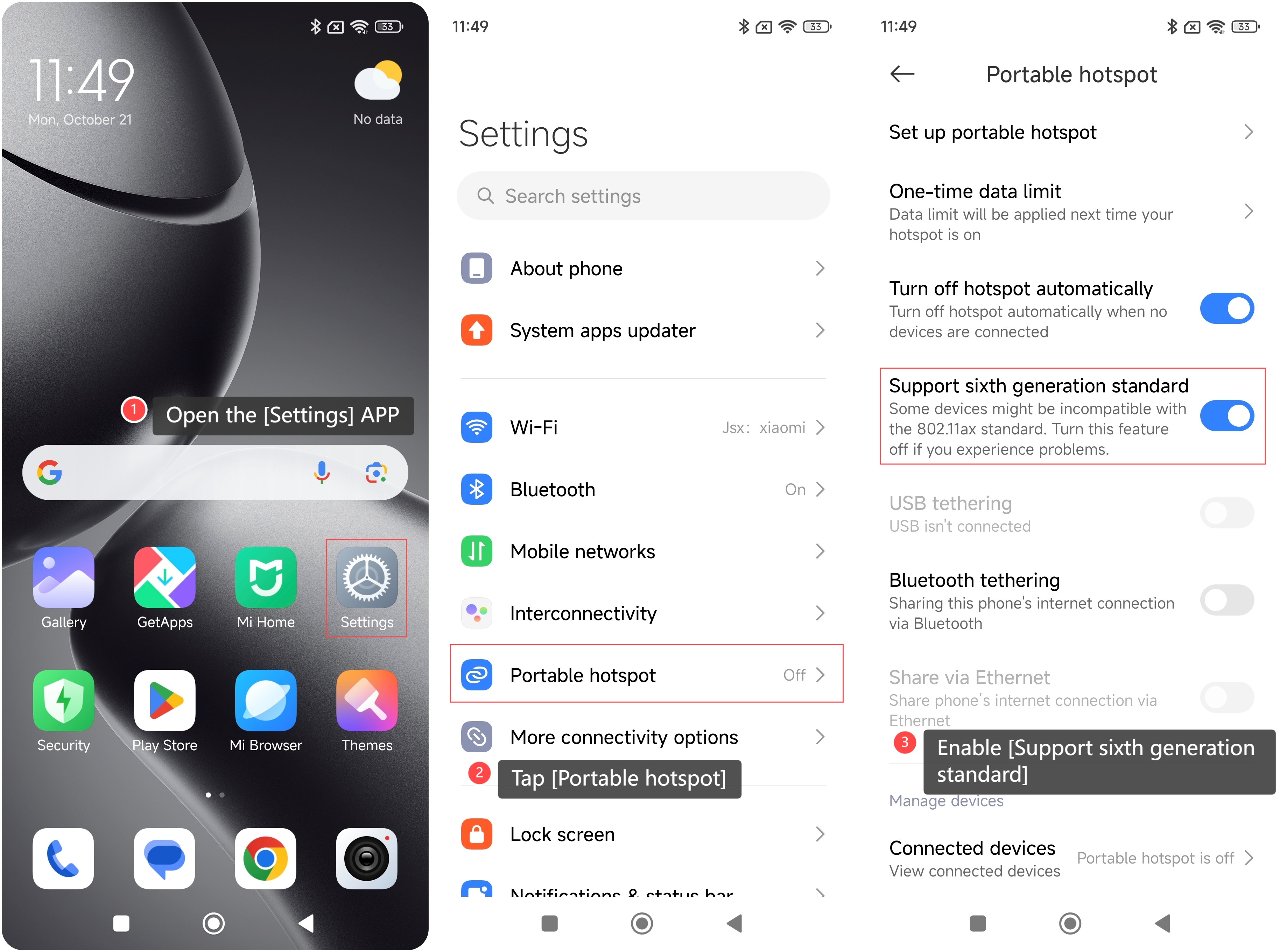 如何在 Xiaomi 14T 上開啟第六代標準?