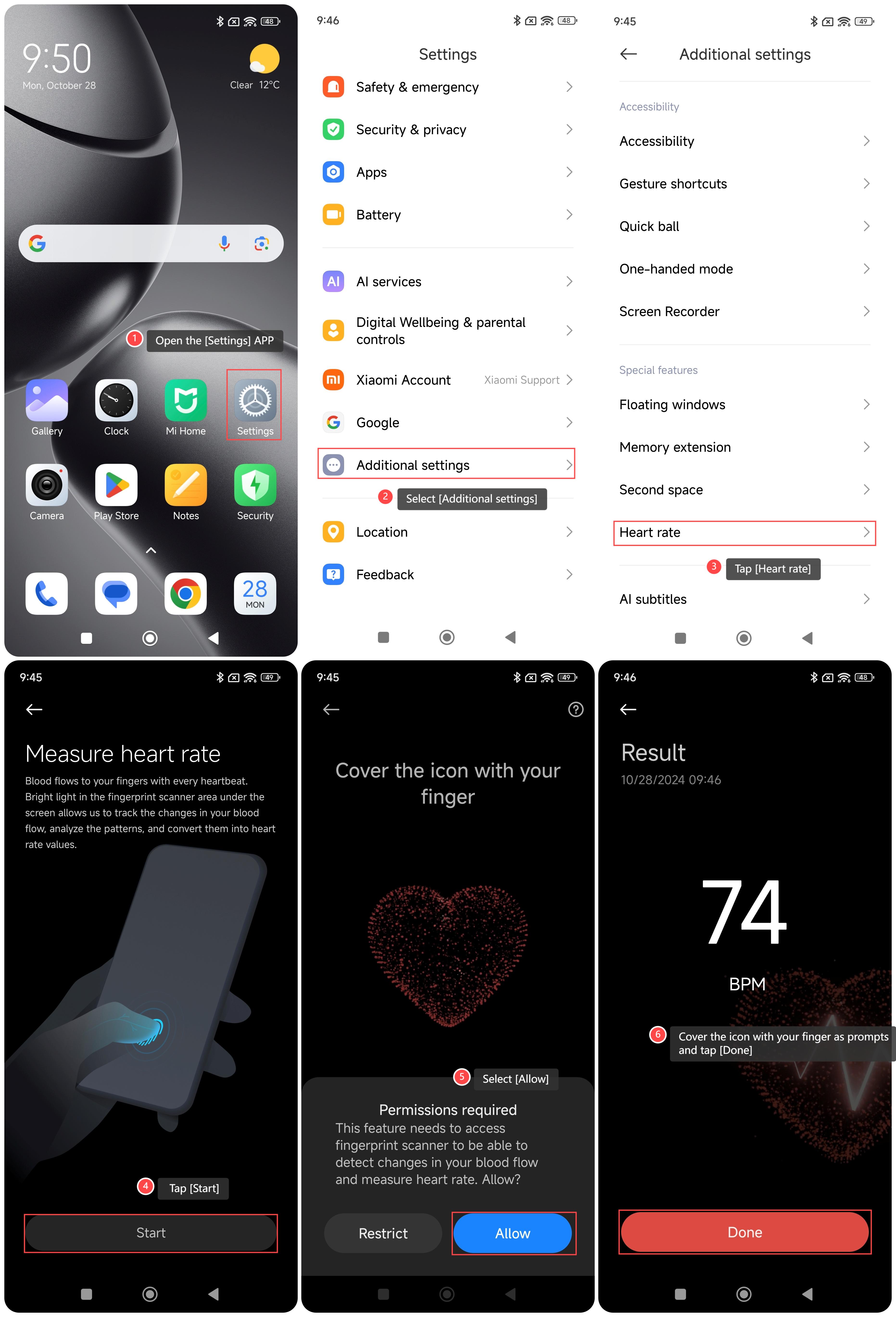 Xiaomi 14T 配備內置指紋感測器,可直接通過手機進行即時心率監測。它讀取脈搏數據並以每分鐘心跳次數 (BPM) 顯示您的心率。對於重要的健康監測,