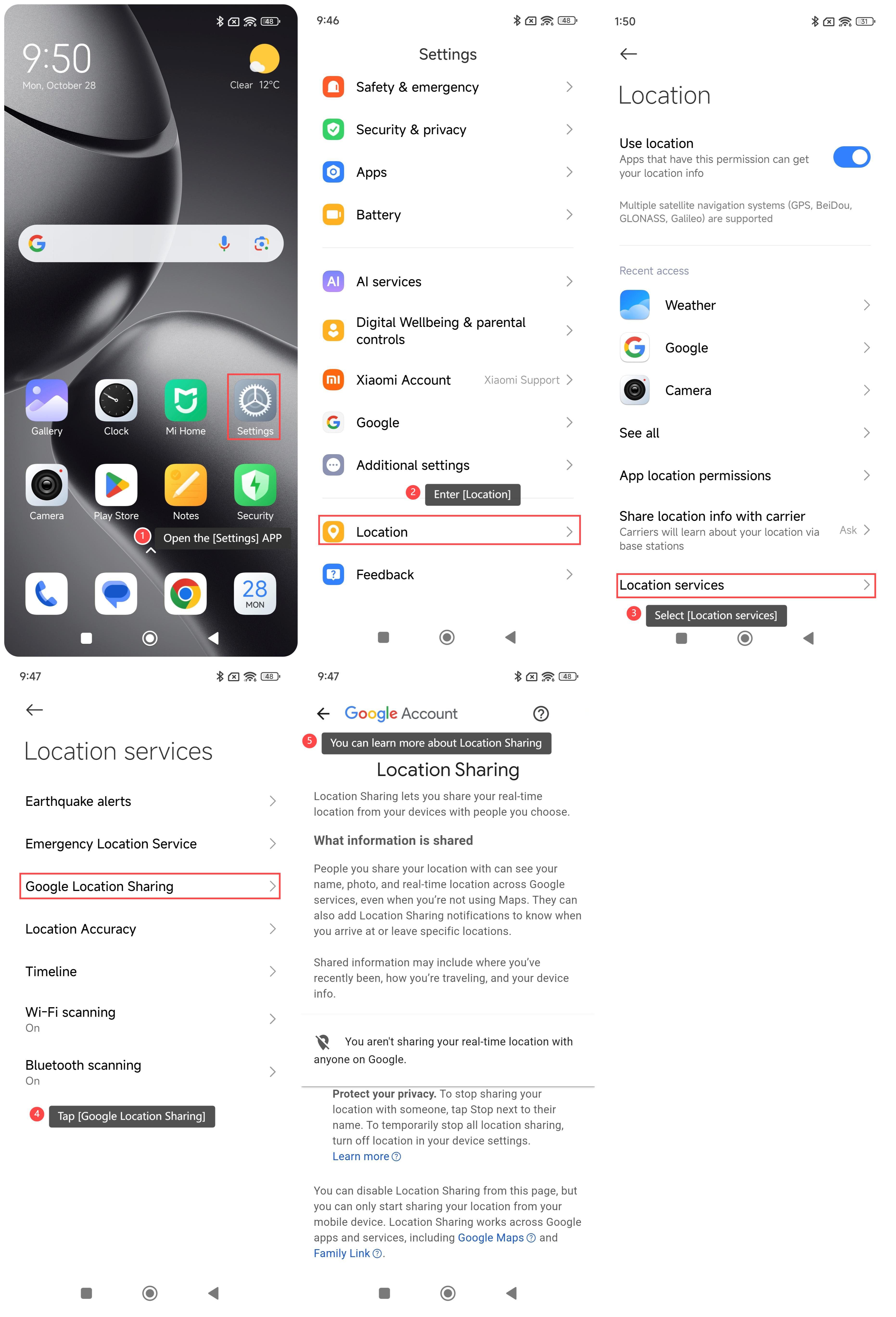 如何在 Xiaomi 14T Pro 上使用位置共用?