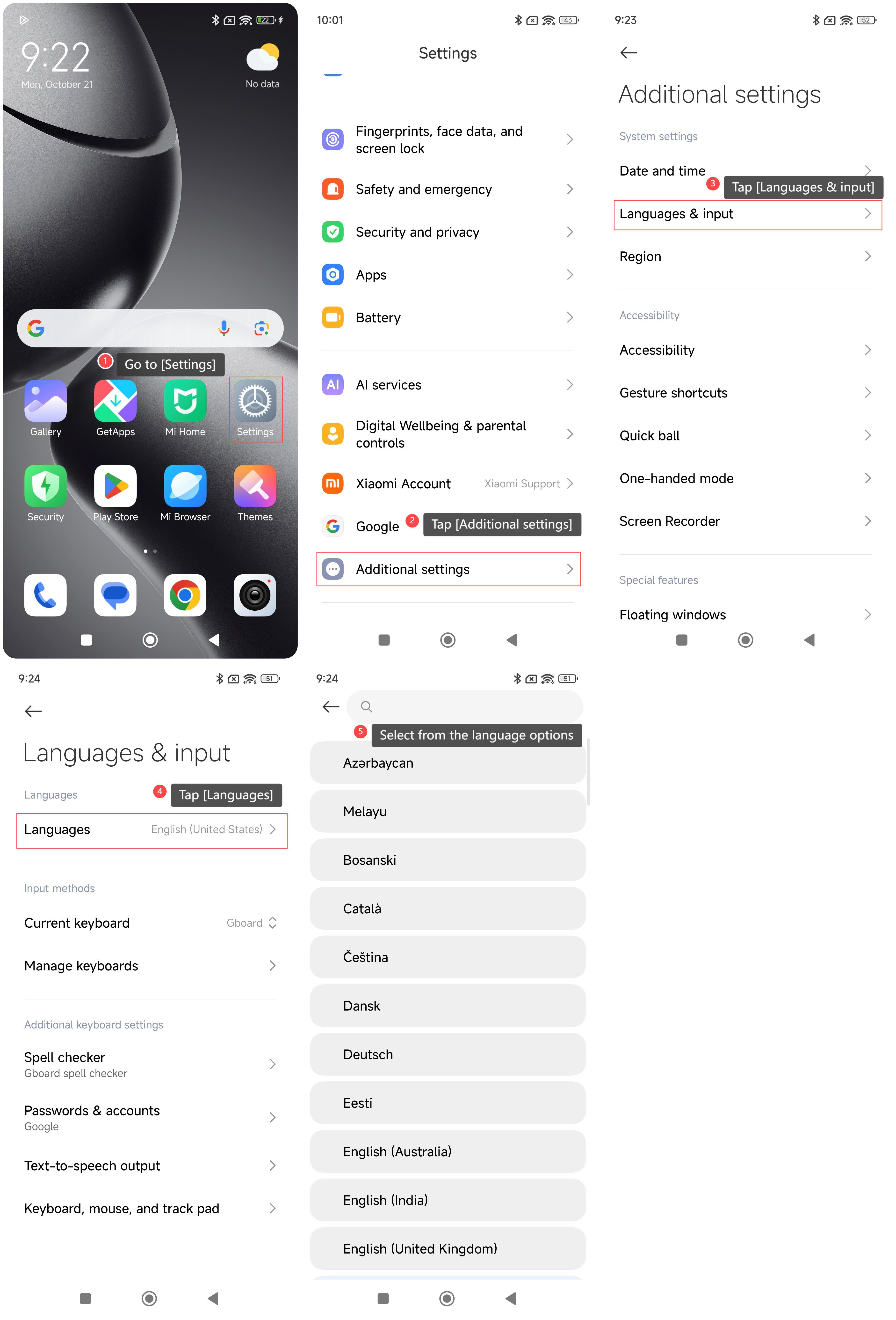 如何在 Xiaomi 14T Pro 上設置語言?