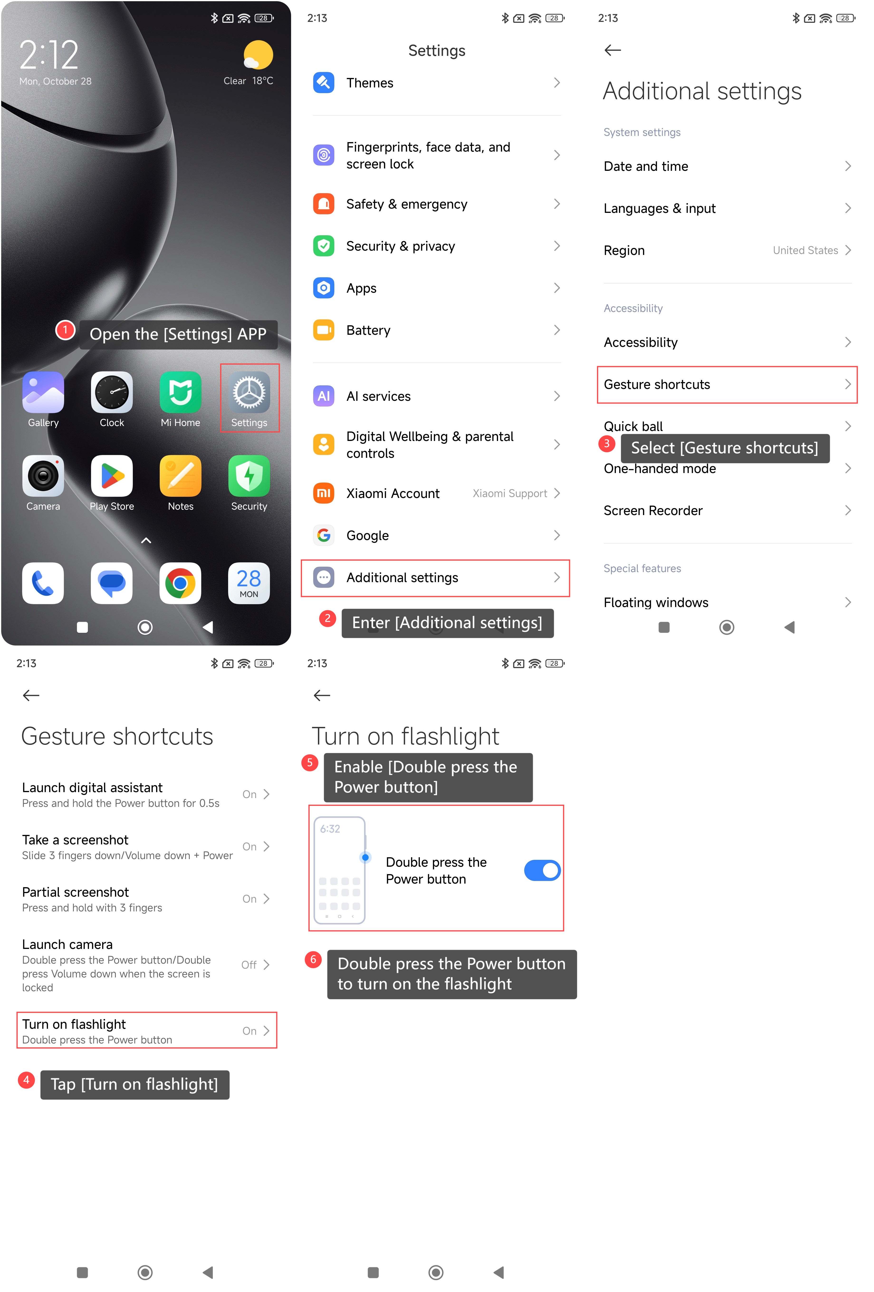 4. 點擊 [打開手電筒];