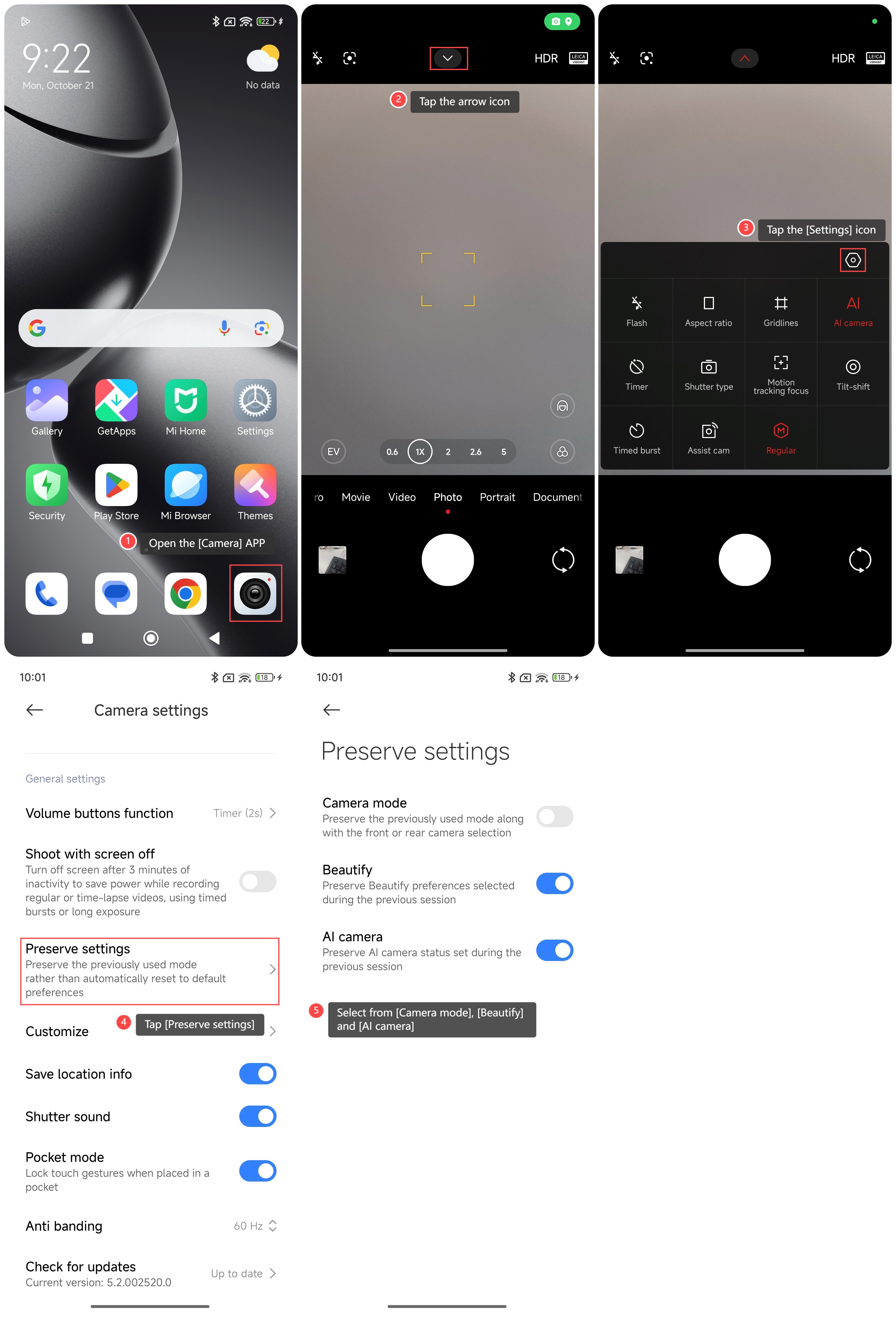 如何保留 Xiaomi 14T 相機上以前的設置?