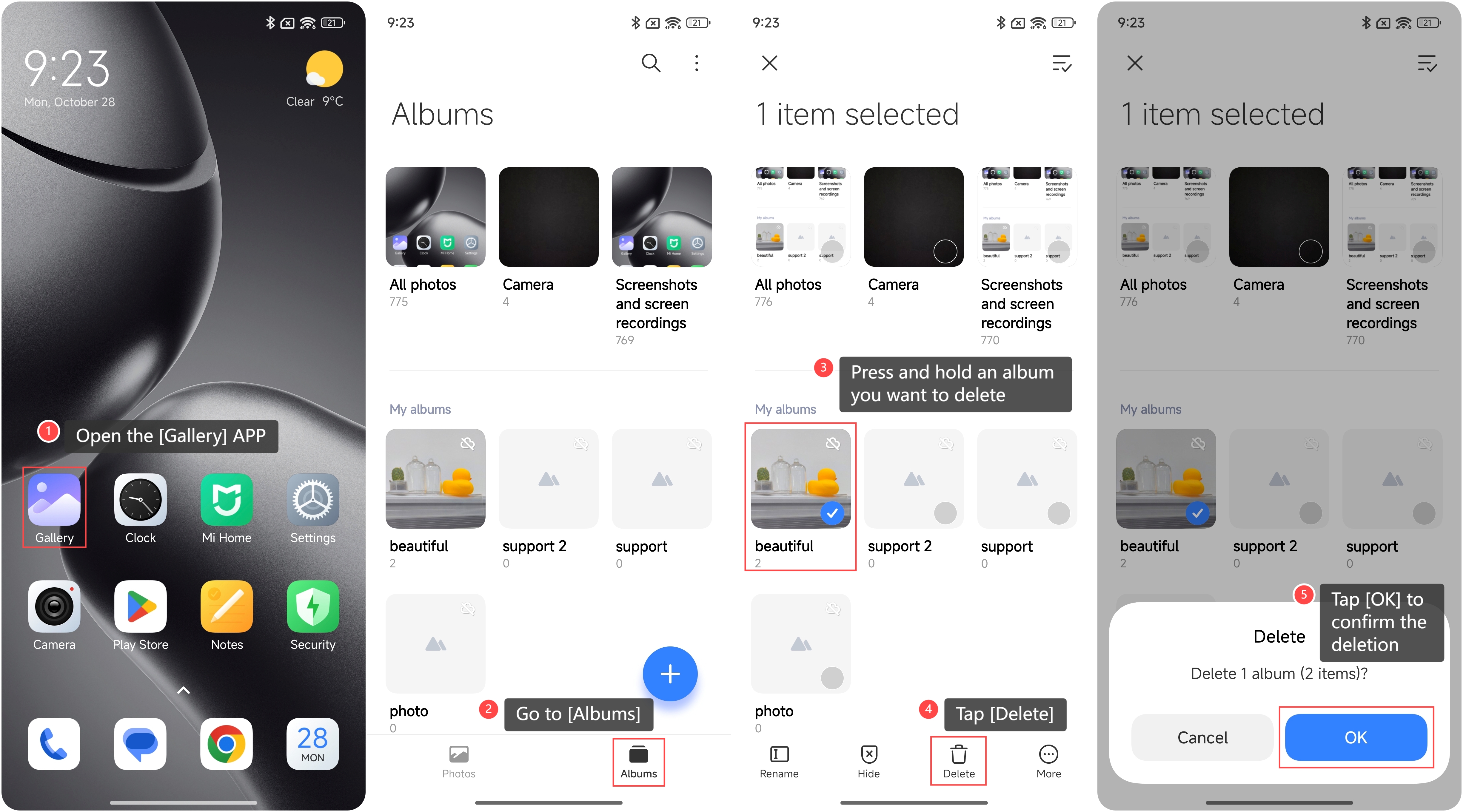如何在 Xiaomi 14T 上的 Gallery 中刪除相冊?