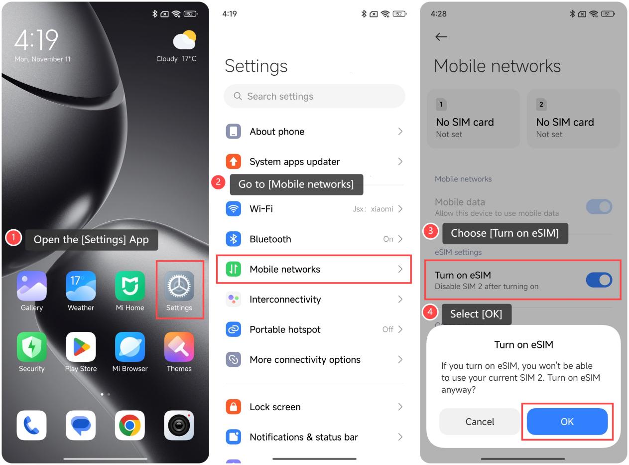 如何在 Xiaomi 14T Pro 上開啟 eSIM?