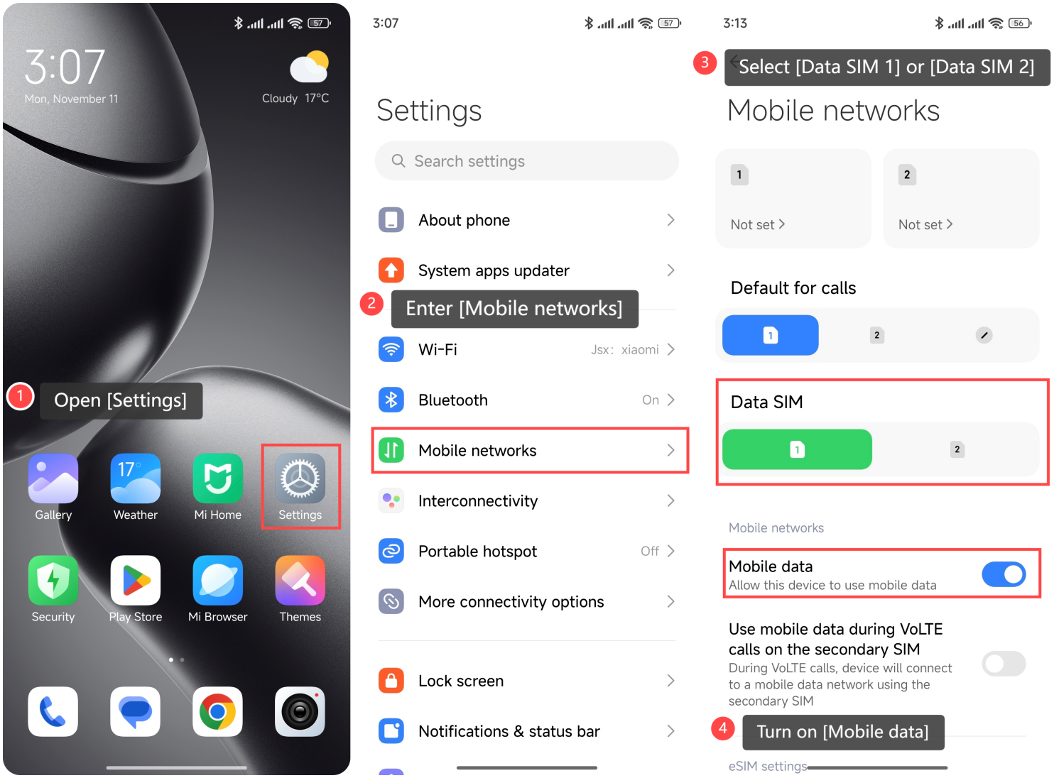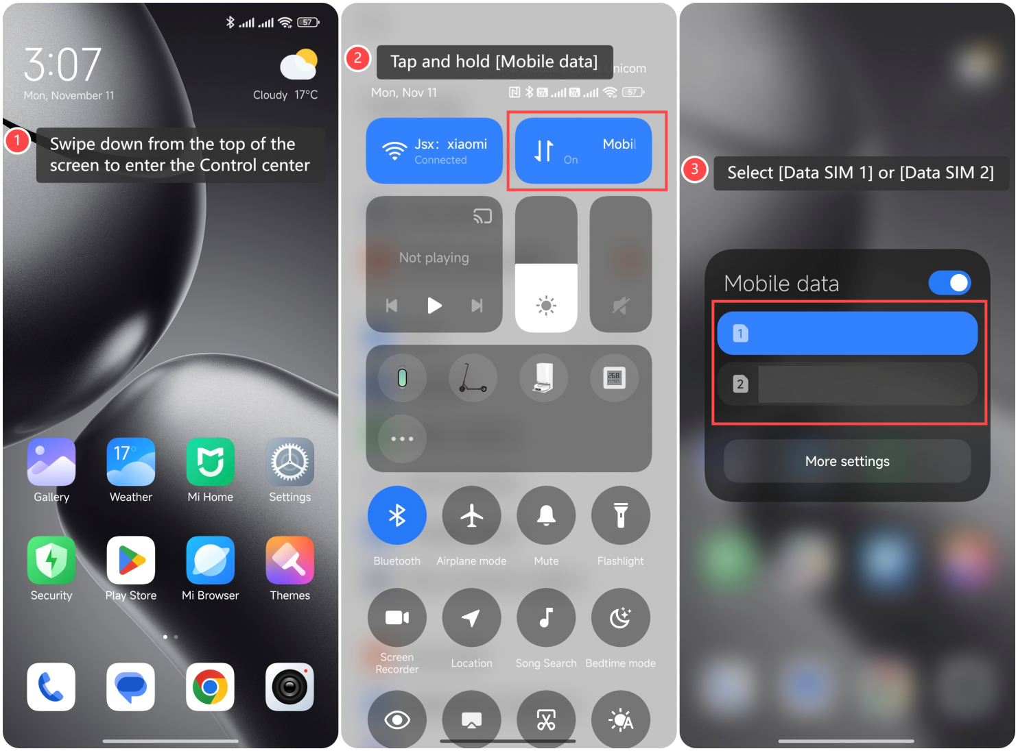 如何為 Xiaomi 14T Pro 上的行動資料設置預設 SIM 卡?