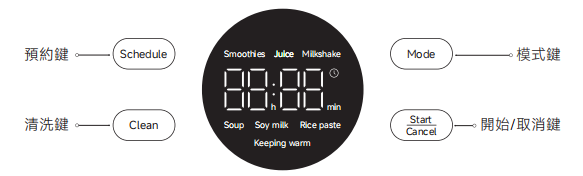 | 豆漿 | 38分鐘 | 幹黃豆約100g(量杯豆漿刻度1400mL處),加入清水至1400mL刻度處 |