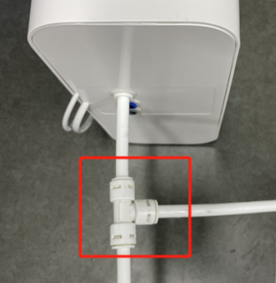 1. 連接需使用T型接頭(不含),淨水管線分為兩路,一端連接淨水器水龍頭,另一端連接POU飲水機。