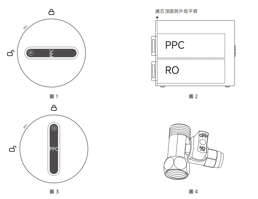 PPC複合濾芯使用壽命可達12 個月,RO濾芯使用壽命可達36個月。